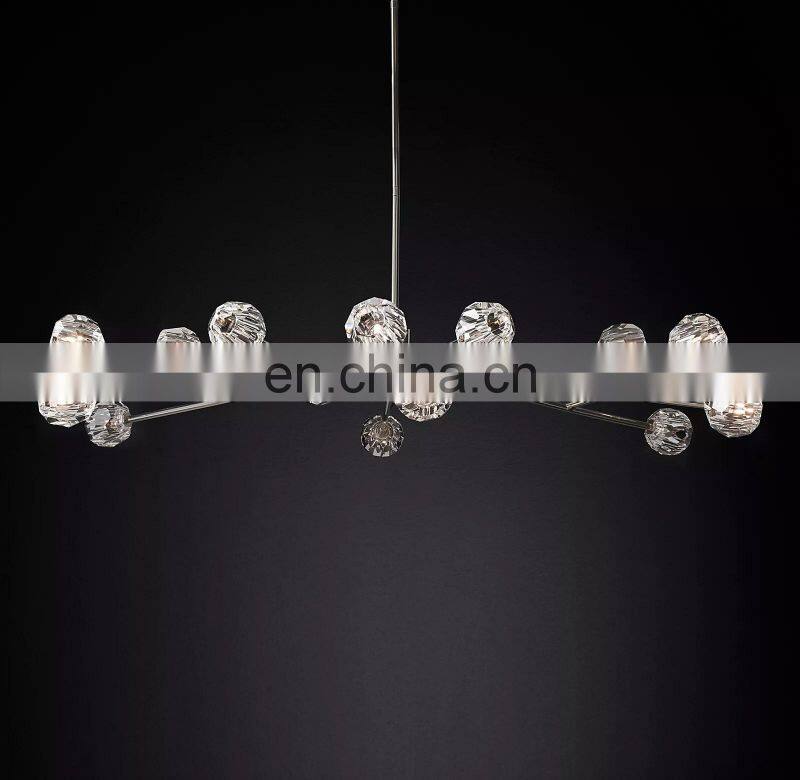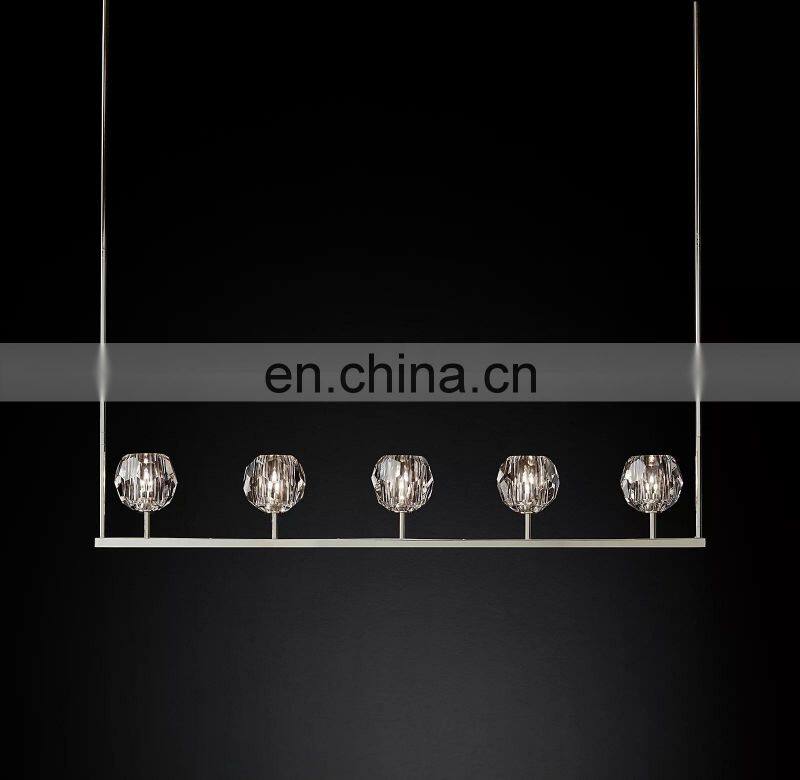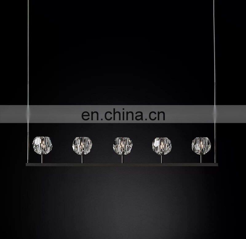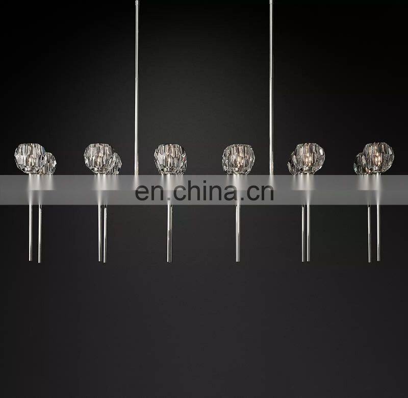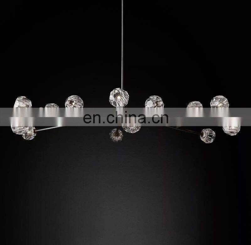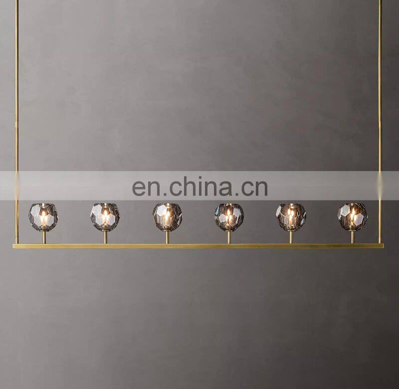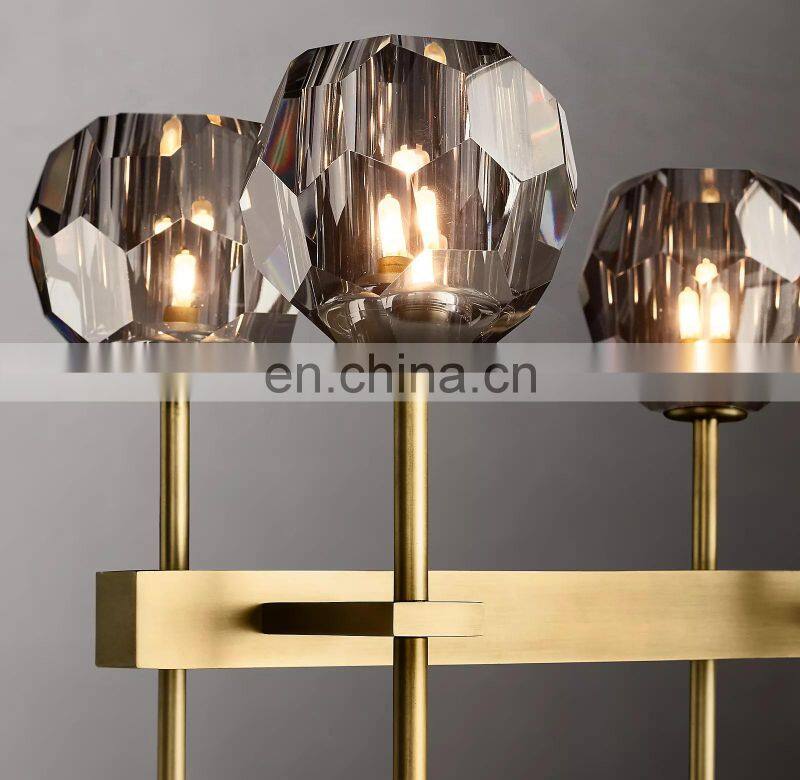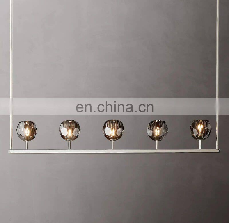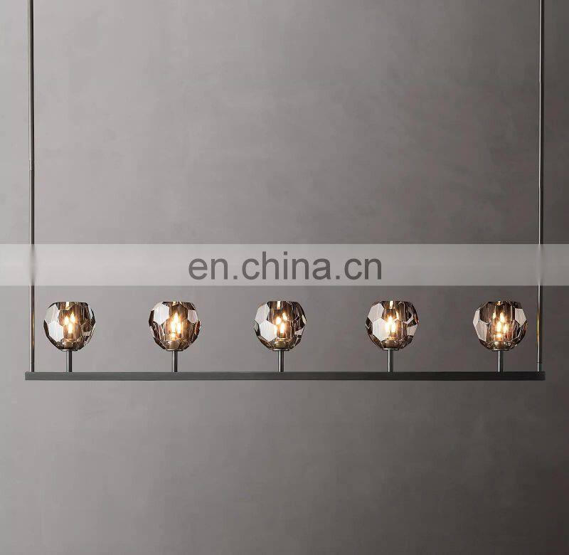 Modern Living Room Hotel Interior Decoration Lighting BOULE Linear Industrial Metal Transparent Smoke Gray Crystal Chandelier