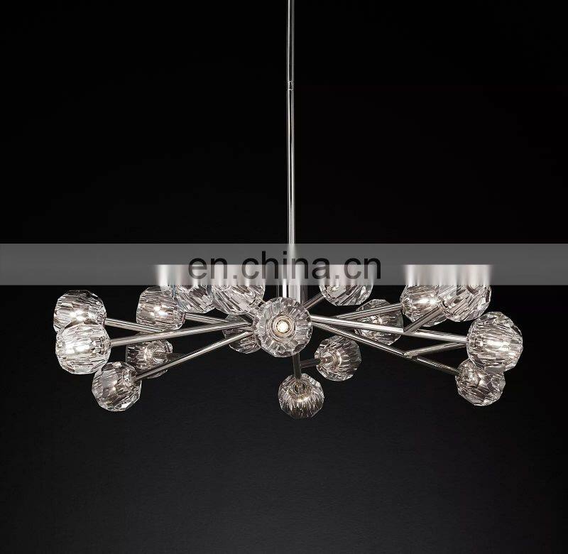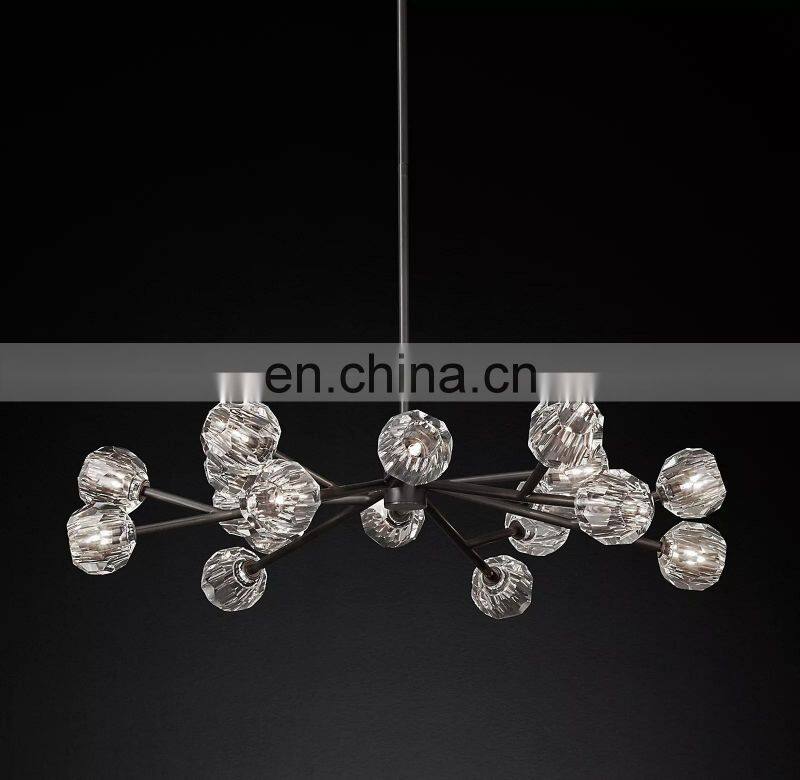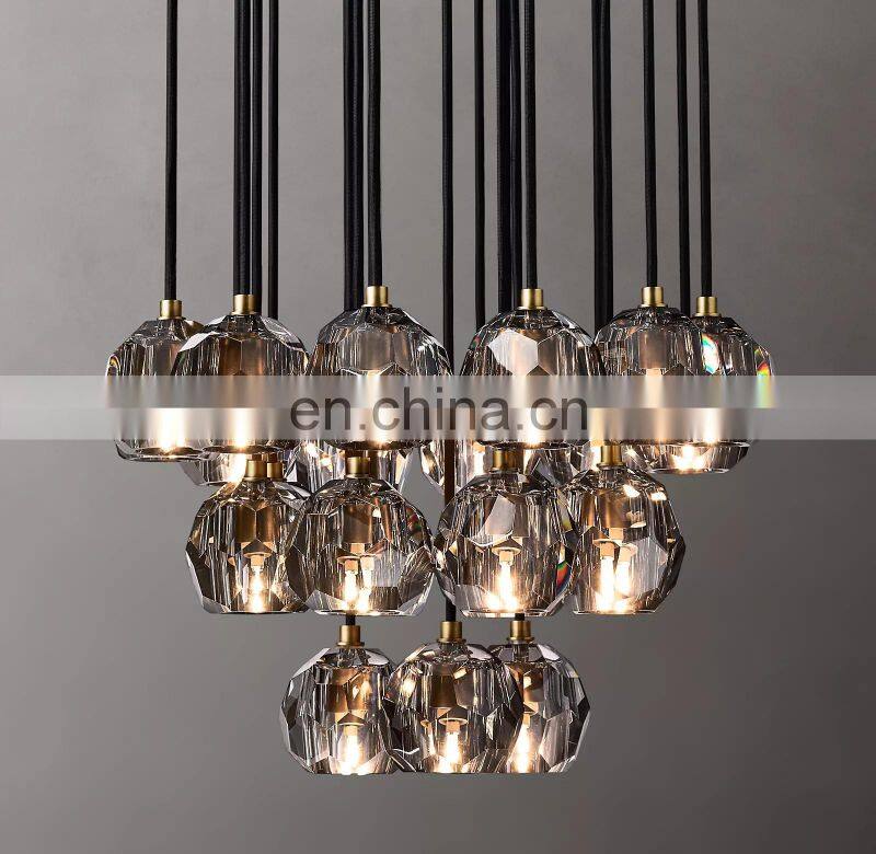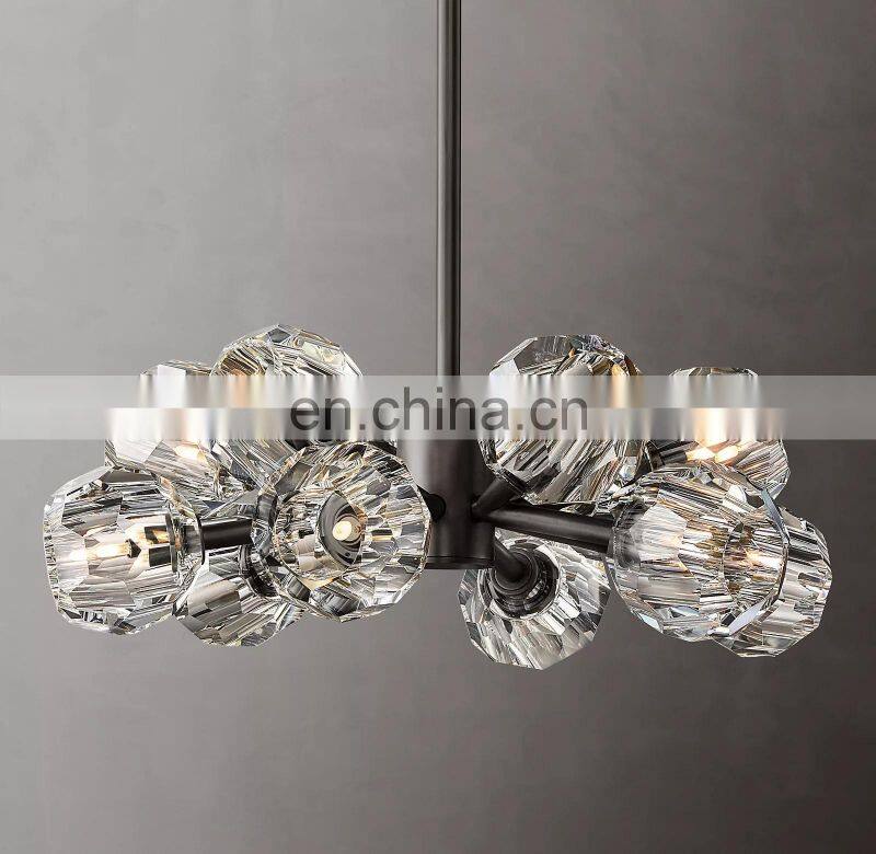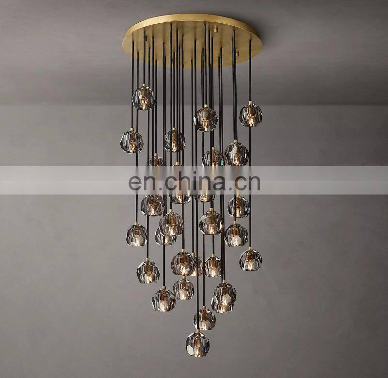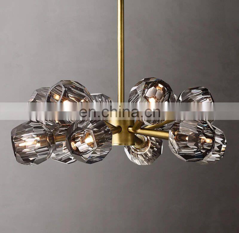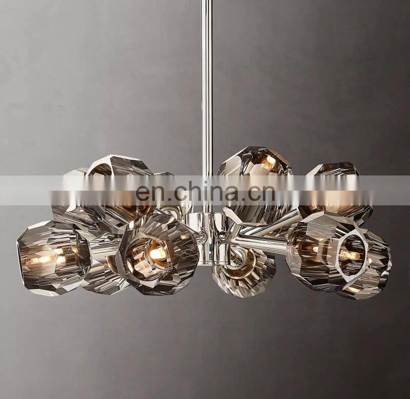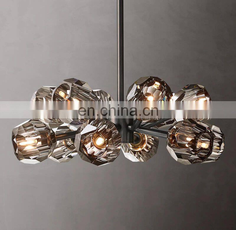 Custom Luxury BOULE Round Industrial Metal Transparent Smoke Gray Crystal Chandelier Living Room Hotel Interior Decoration Hang