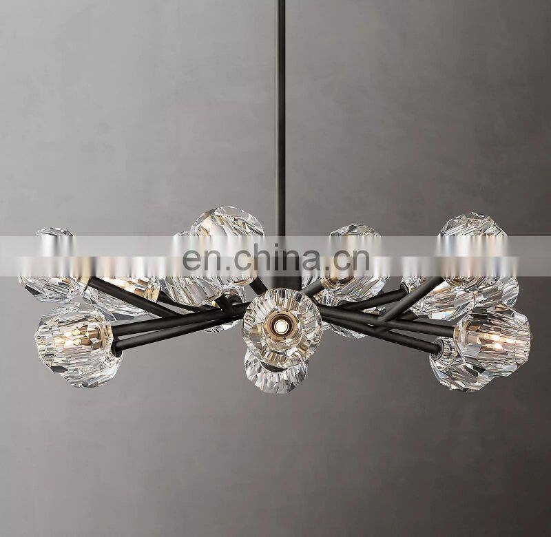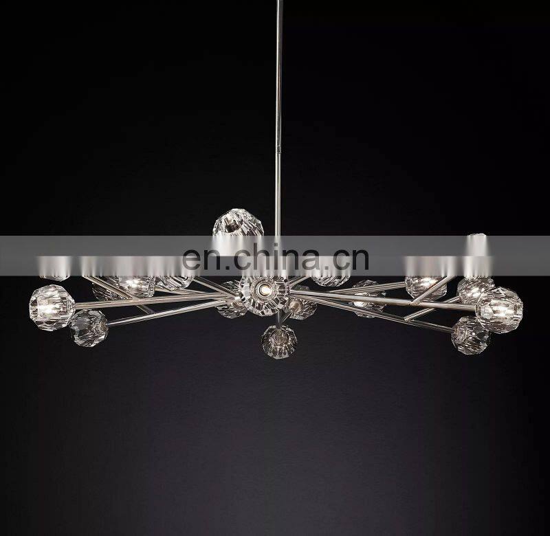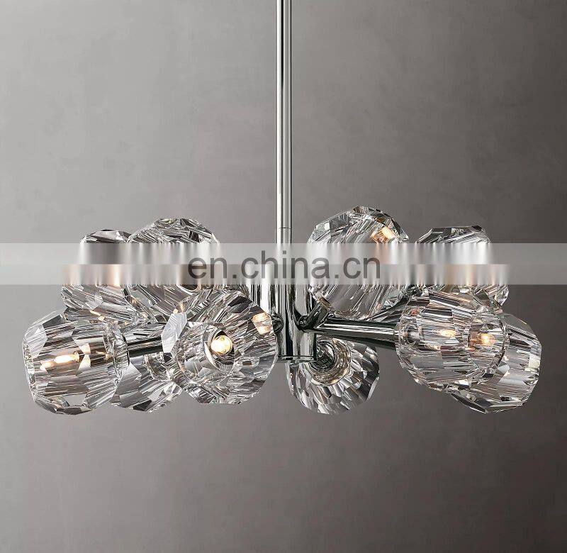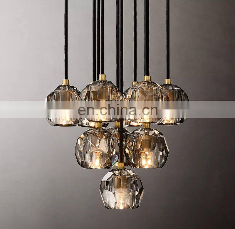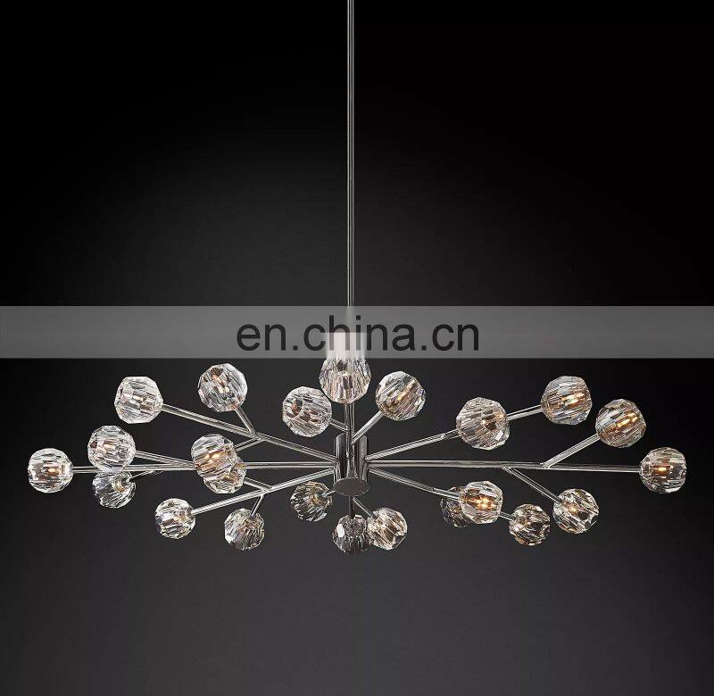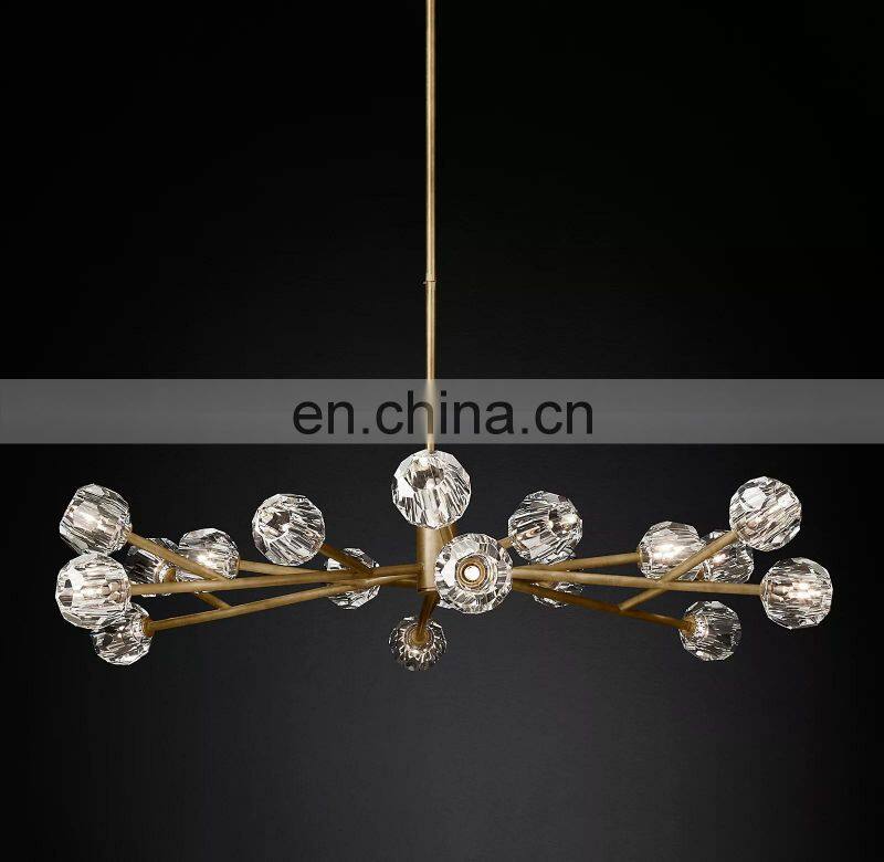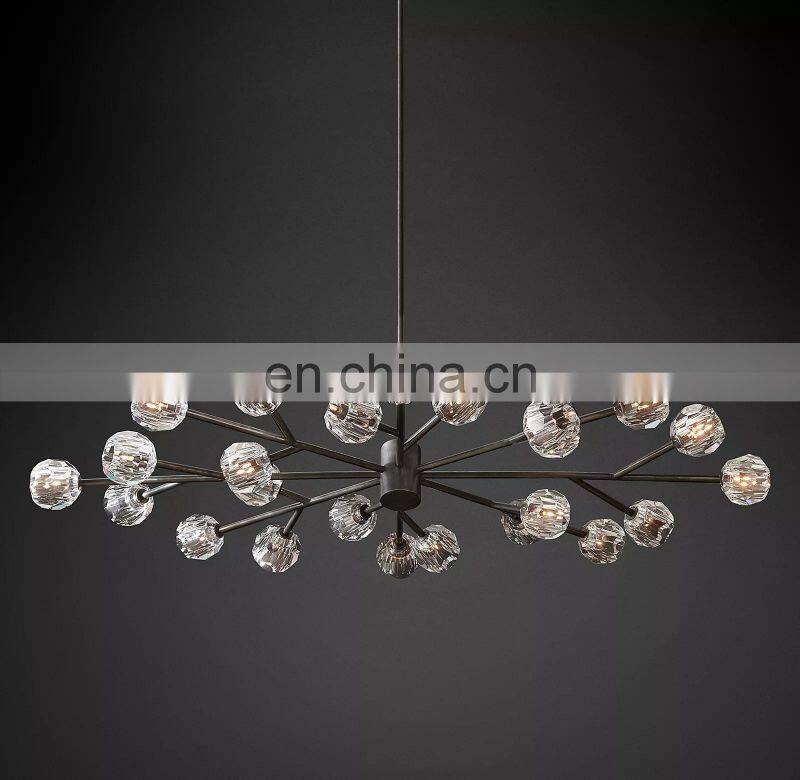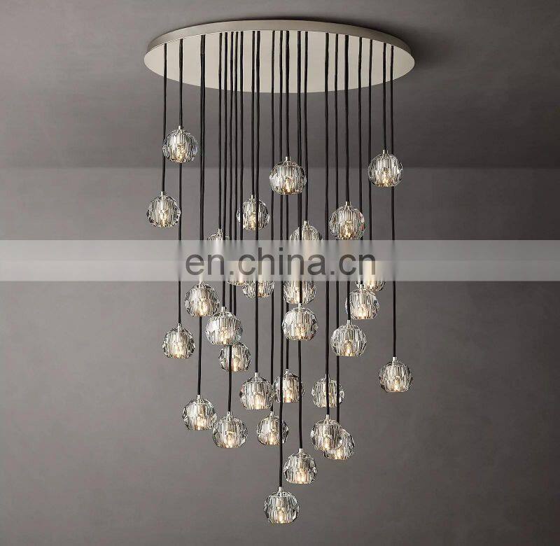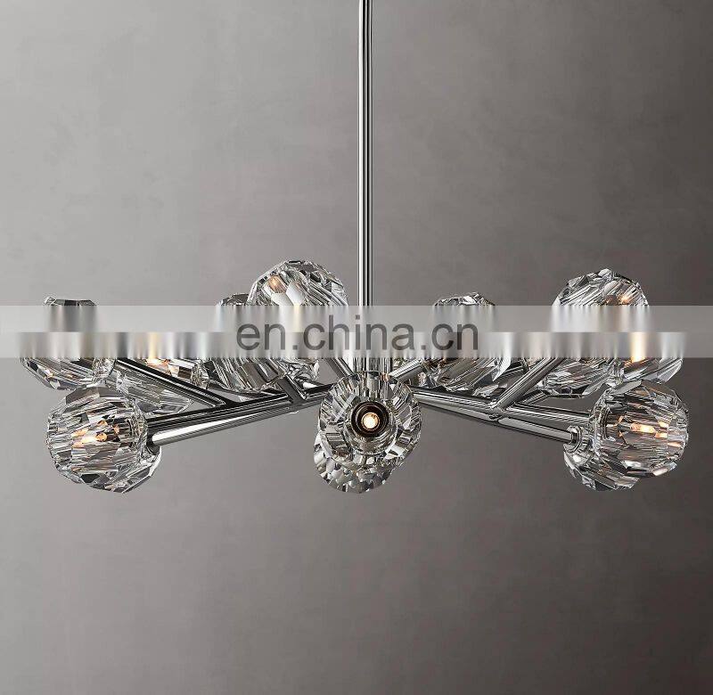 Custom Luxury BOULE Round Industrial Metal Transparent Smoke Gray Crystal Chandelier Living Room Hotel Interior Decoration Hang