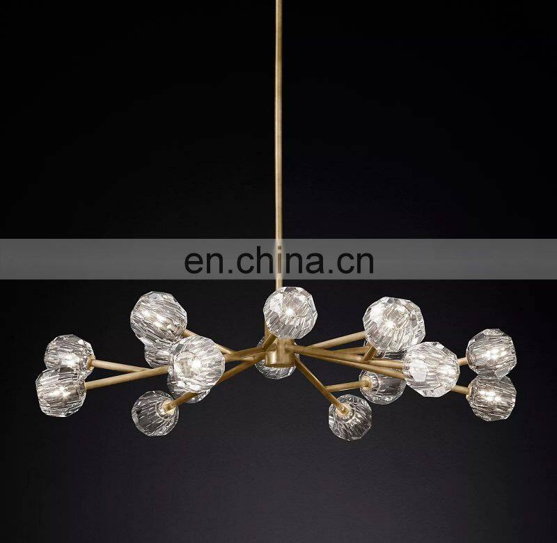Customized Eclatant Metal Industrial Brass Glass Ball Round Chandelier Home Project Hotel Light Luxury Ceiling Lighting