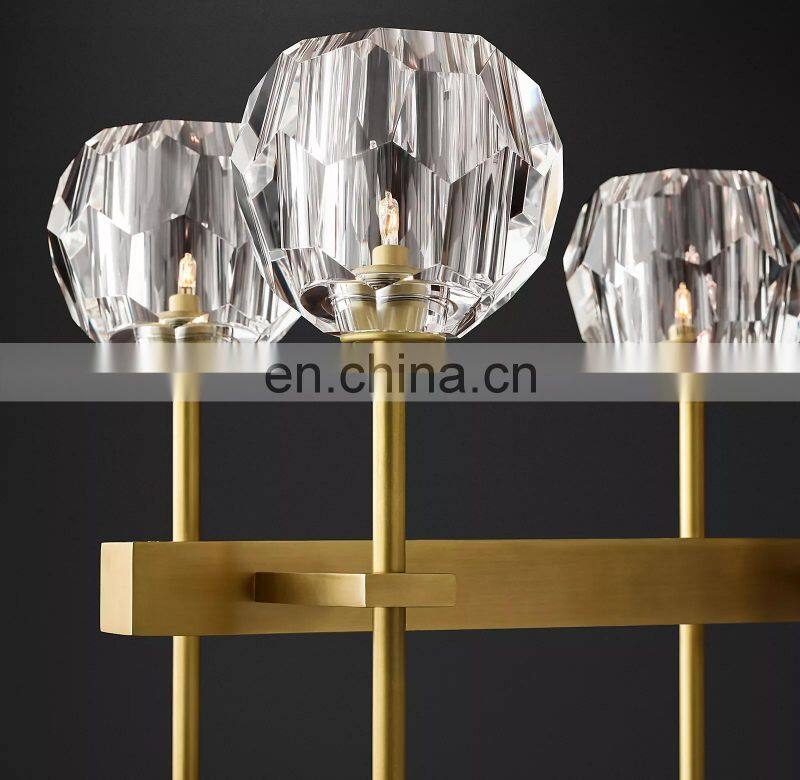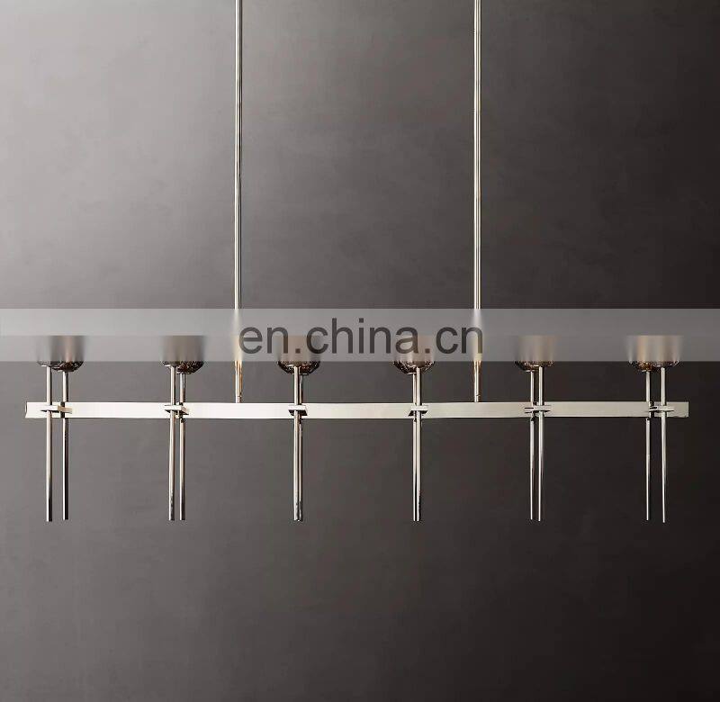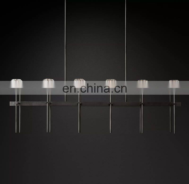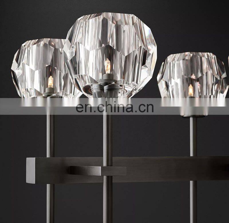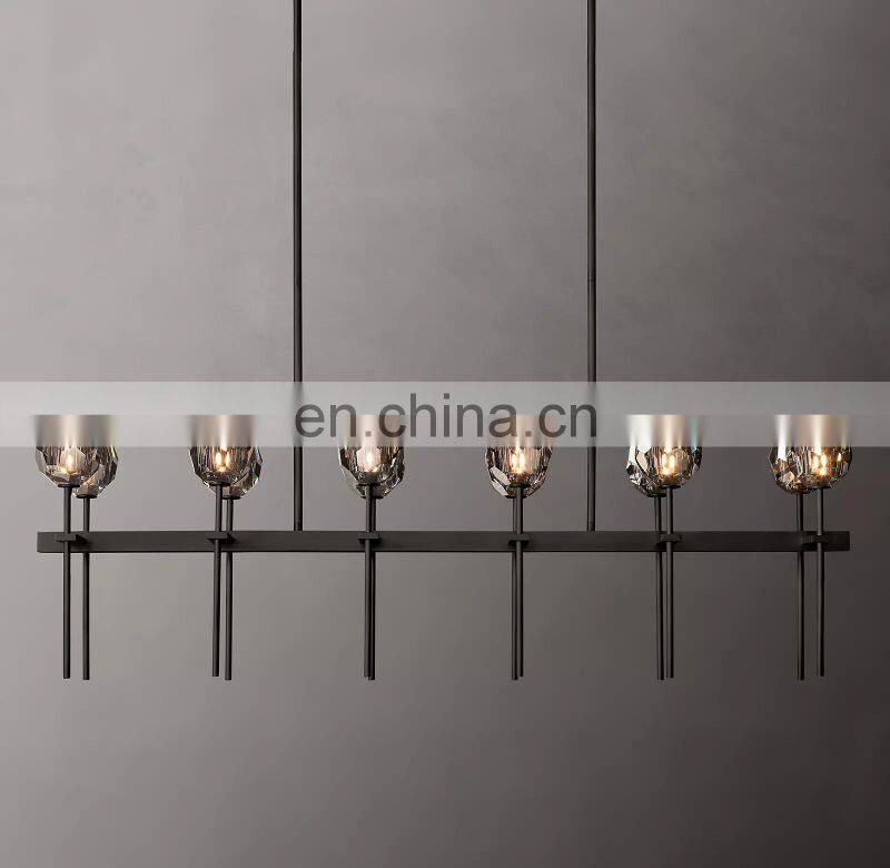 Home > Products > American Chandelier > BOULE Luxury Living Room Hotel Interior Decoration Double Linear Industrial Metal Transparent Smoke Gray Crystal Chandelier