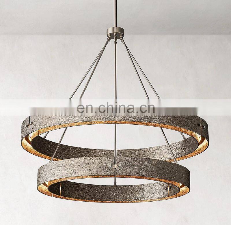 Retro Luxury Round Tier Living Room Decoration Brass Chandelier Kitchen Bedroom Ceiling Pendant Lights