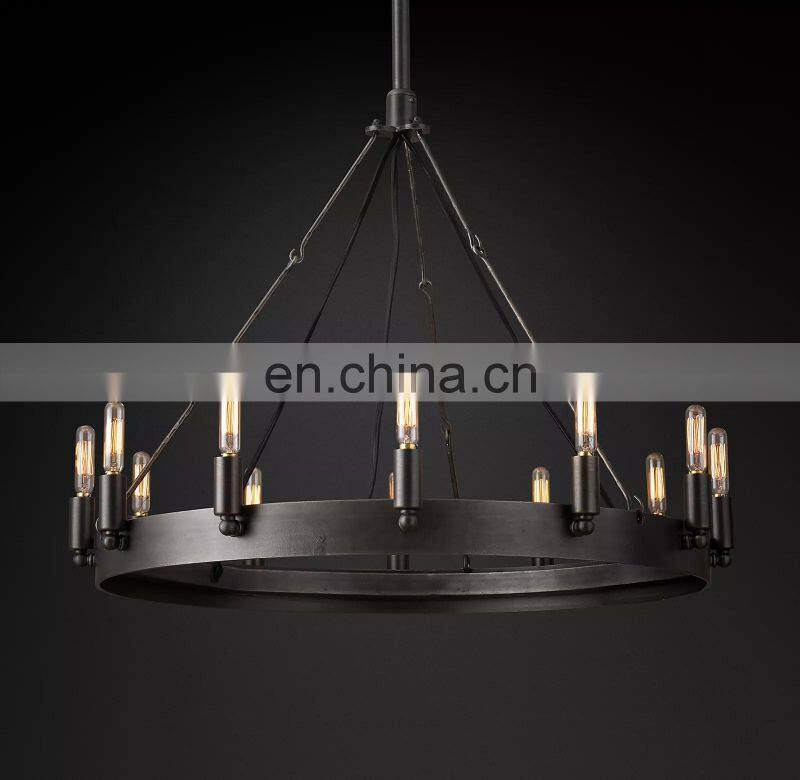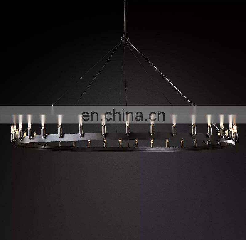 Modern Luxury American Retro Room Hotel Decoration Round Chandelier Lighting Camino Retro Filament Glass Lampshade Chandelier
