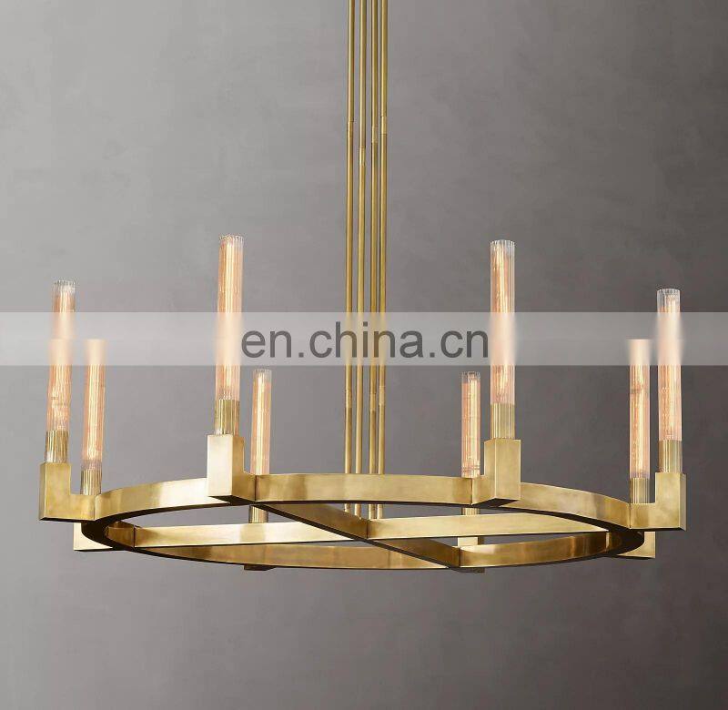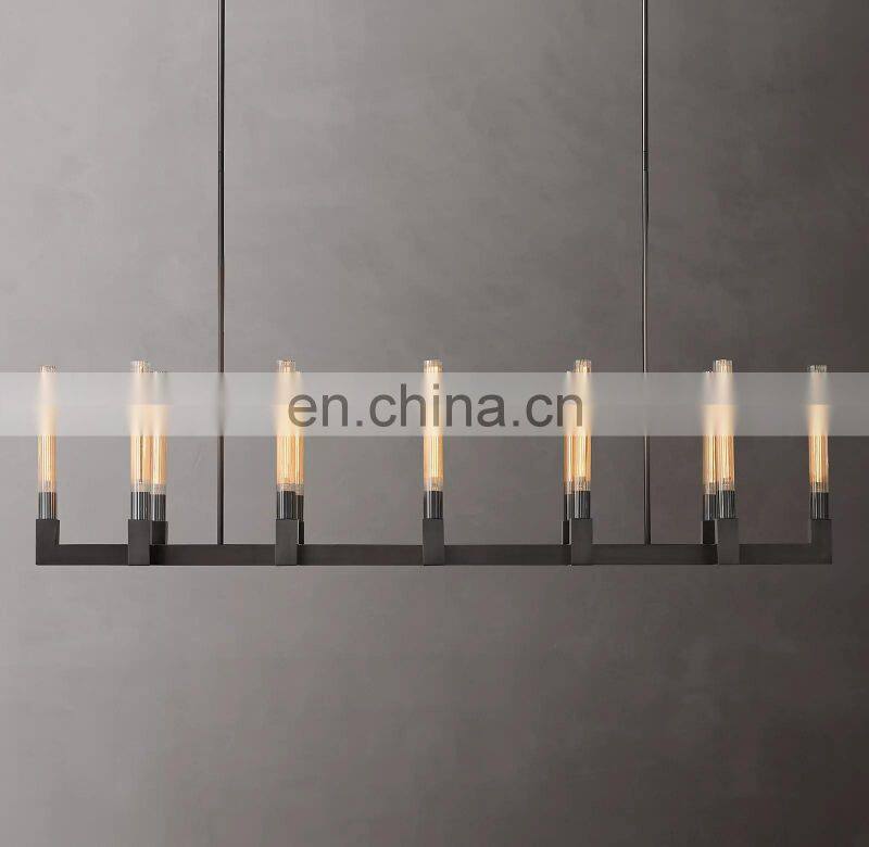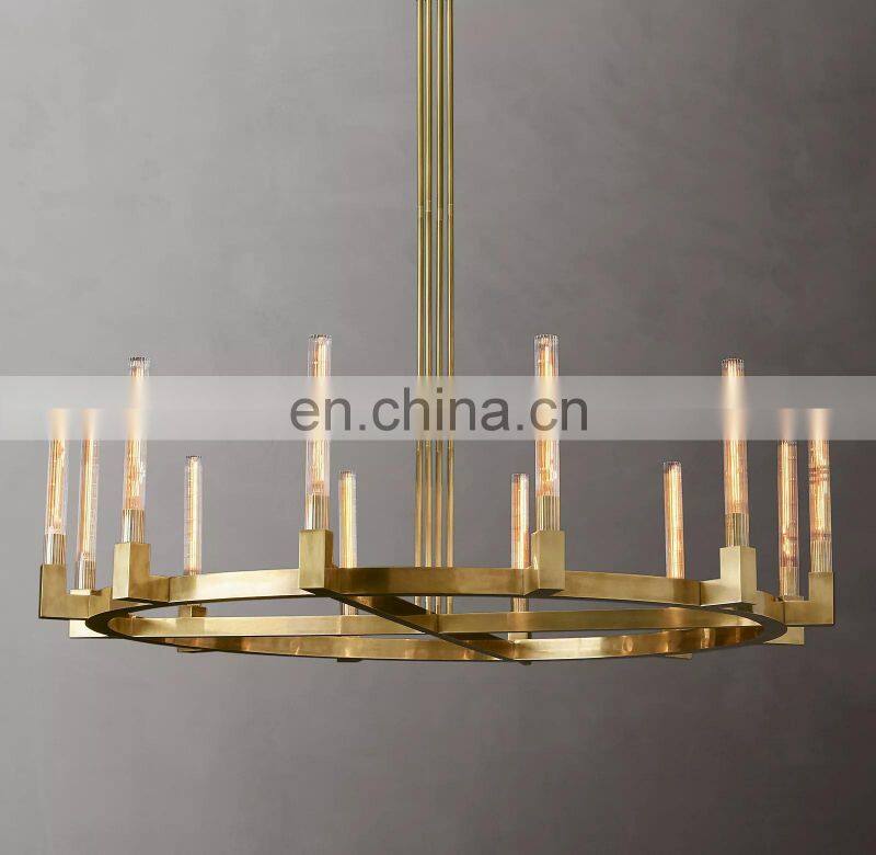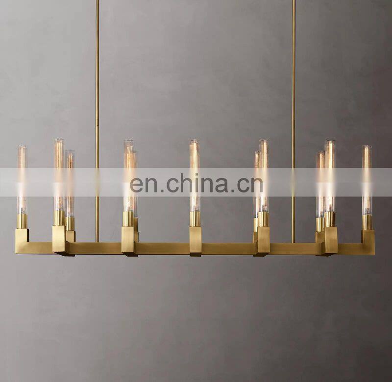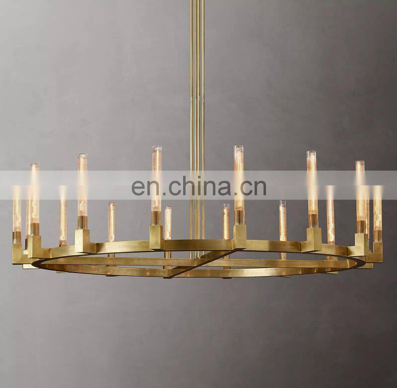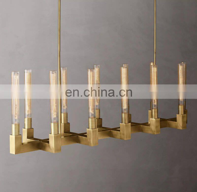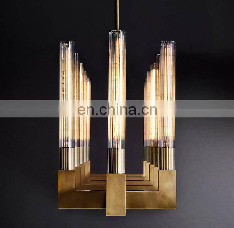 Home > Products > American Chandelier > Luxury Cannele Linear Brass Industrial Glass Pendant Light for Home Hotel Ceiling Suspension Lighting