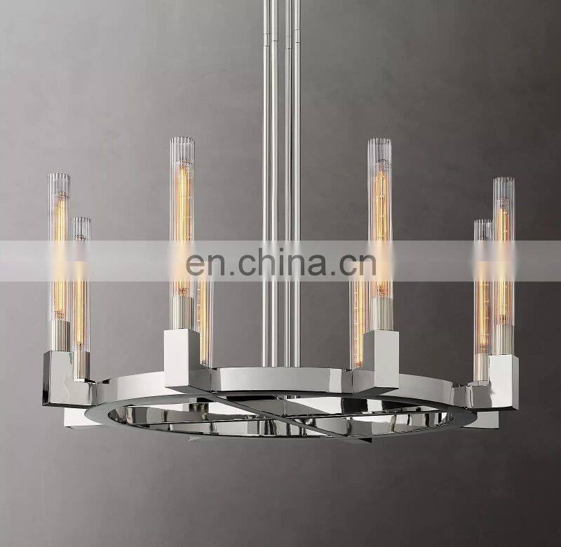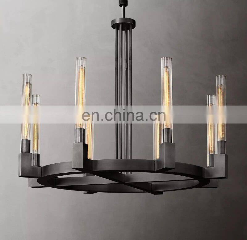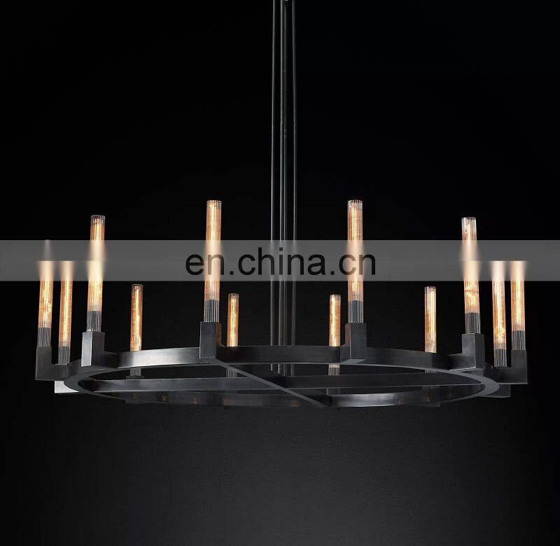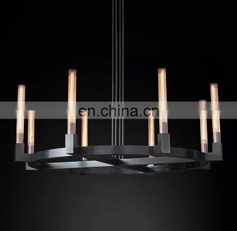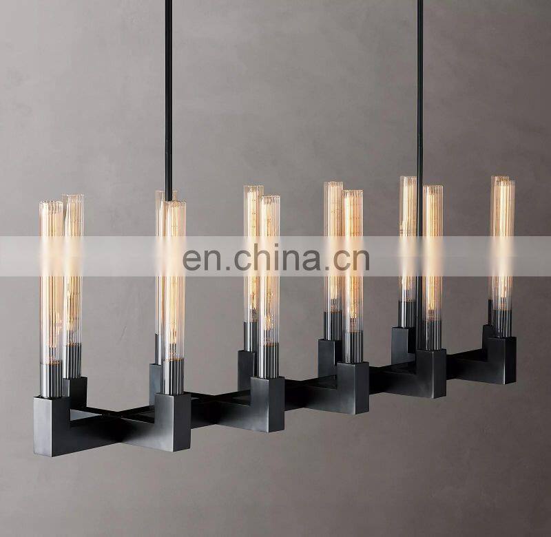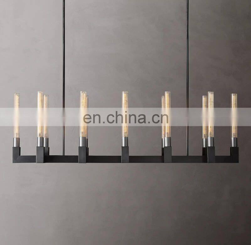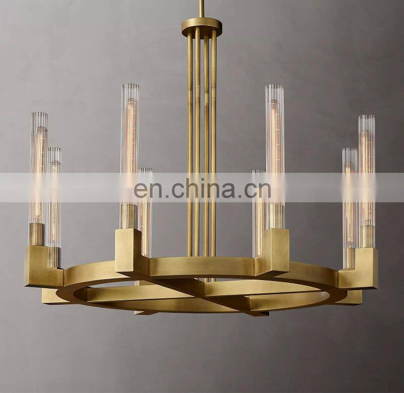 Home > Products > American Chandelier > Luxury Cannele Linear Brass Industrial Glass Pendant Light for Home Hotel Ceiling Suspension Lighting