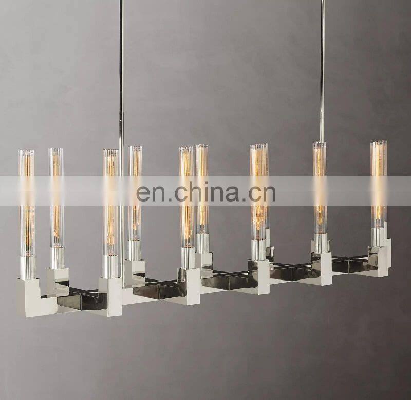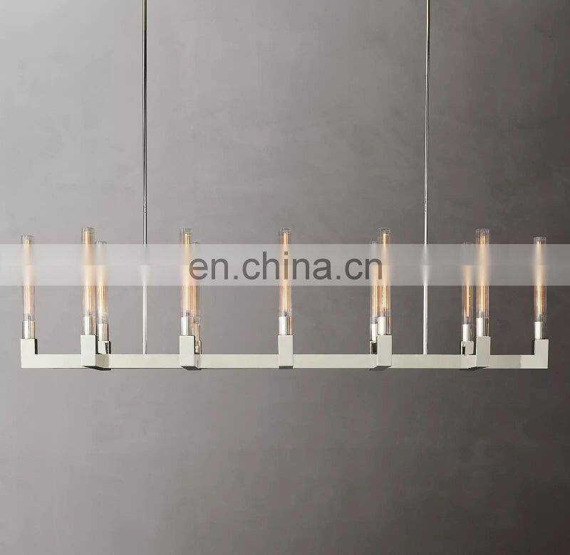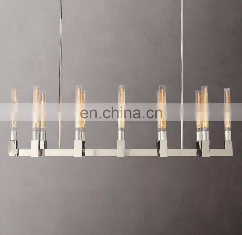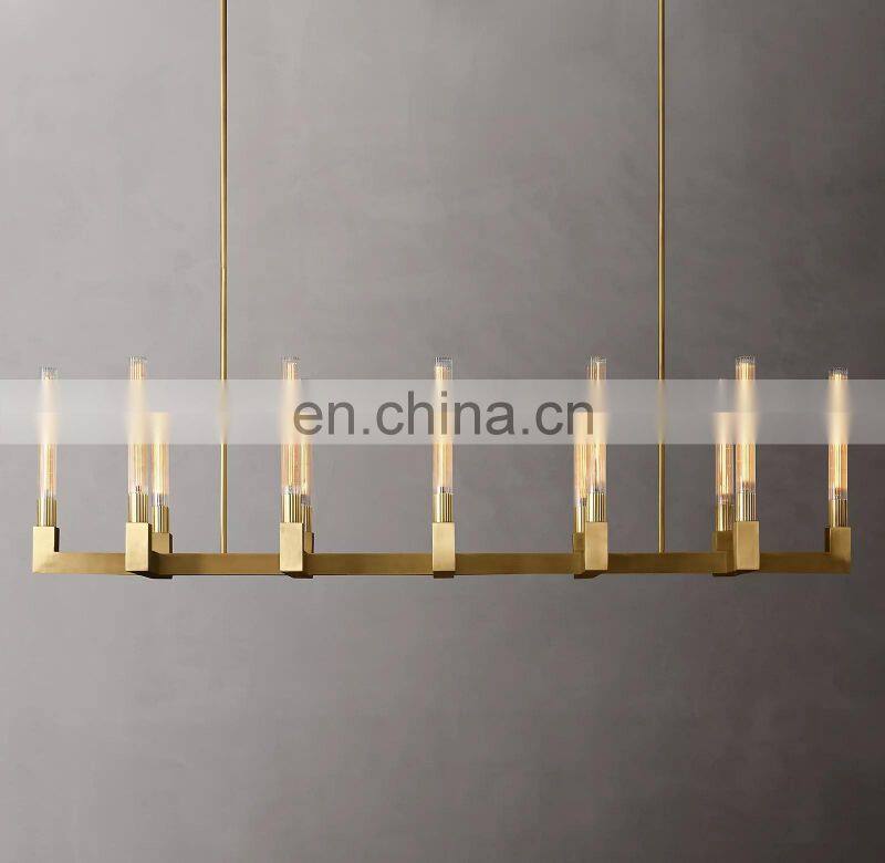 Luxury American Style Brass Crystal Lamp Modern Design LED Light Linear Pendant Glass Chandelier for Home Office or Restaurant