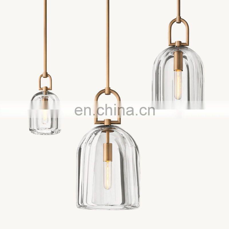 Classic Retro Brass Transparent Glass Pendant Light Home Hotel Exhibition Hall Decoration Lighting Chandeliers