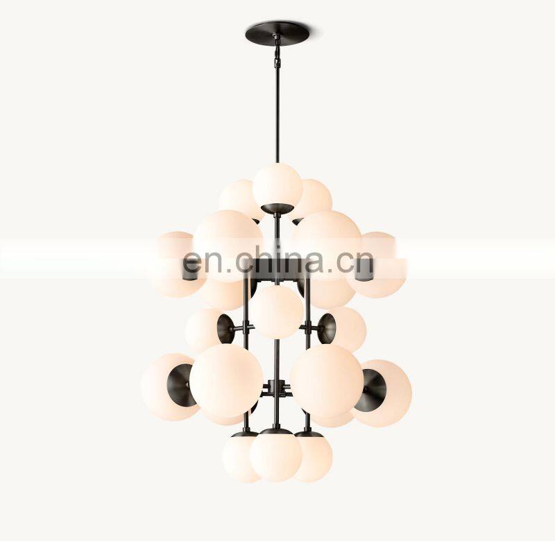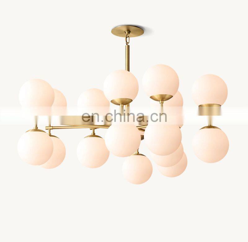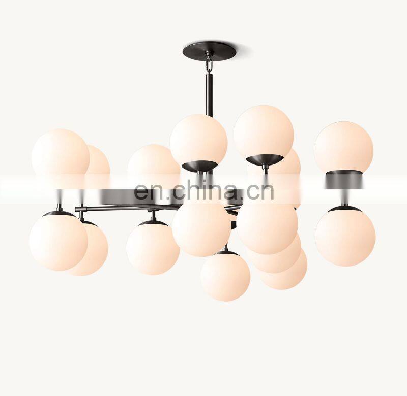 Luxurious Classic Modern Frosted Glass Ball Metal Industrial Rectangular Chandelier Home Hotel Light Luxury Interior Lighting