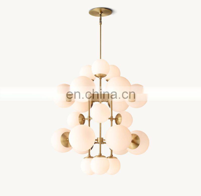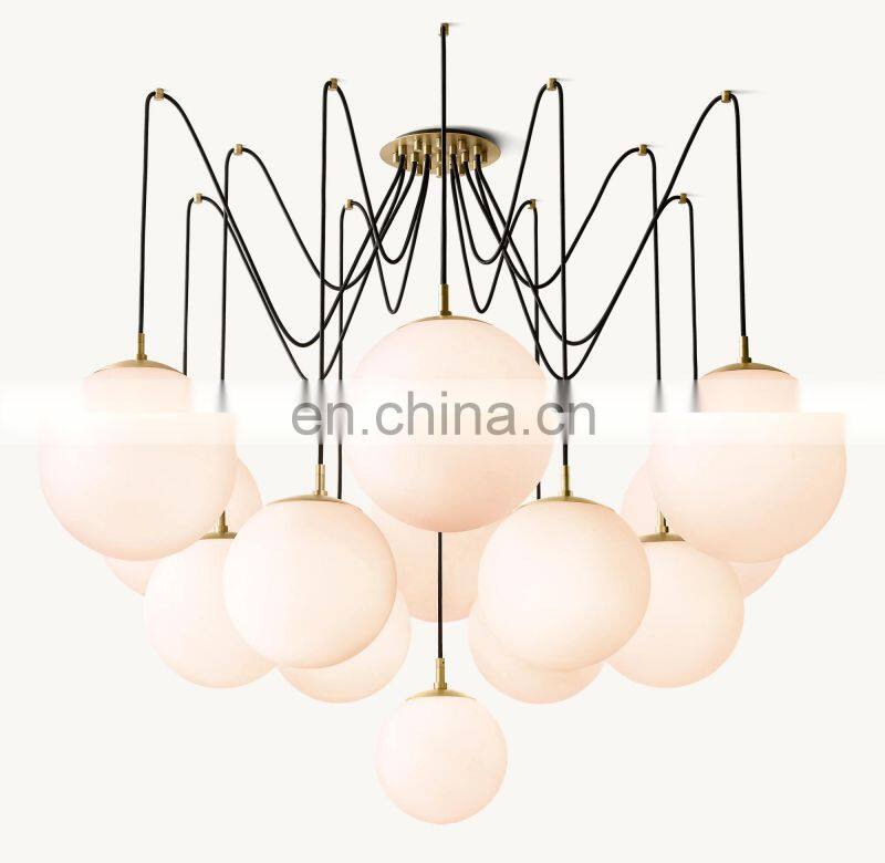 Customized Eclatant Metal Industrial Brass Glass Ball Round Chandelier Home Project Hotel Light Luxury Ceiling Lighting