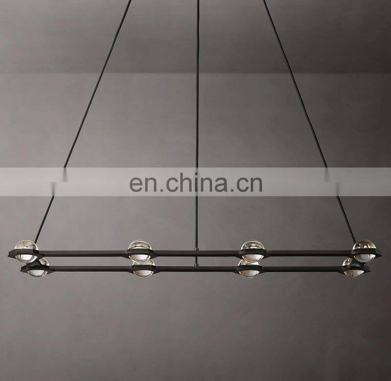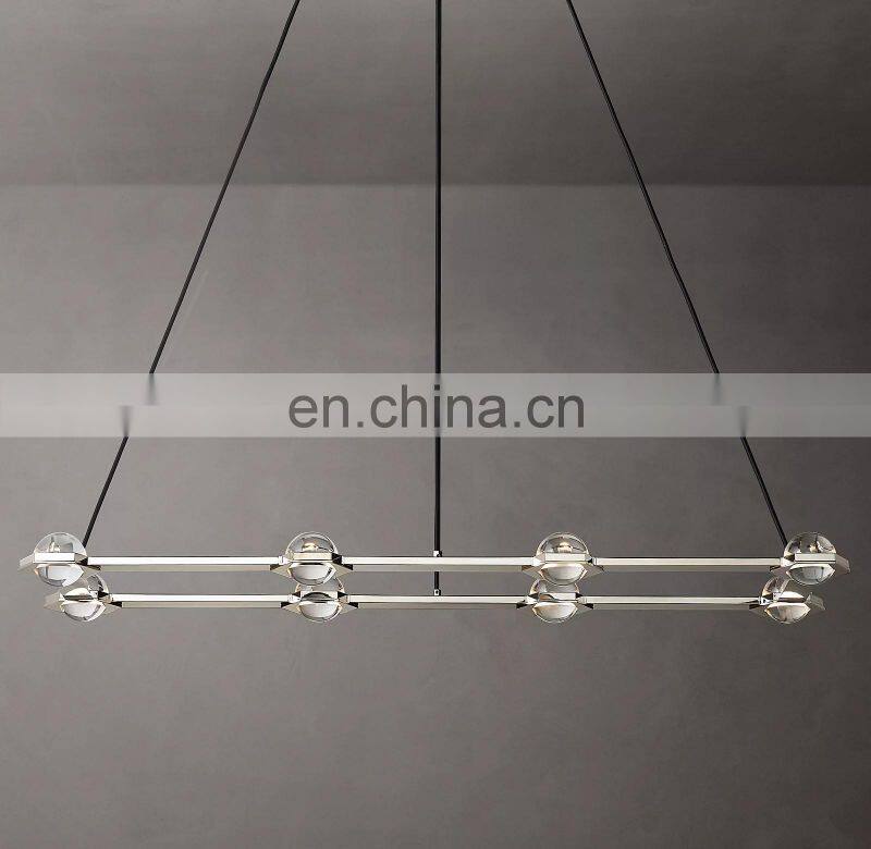 Modern American Style Home Hotel Decoration Metal Industrial Style Selenite Crystal Chandelier Rectangular Chandelier