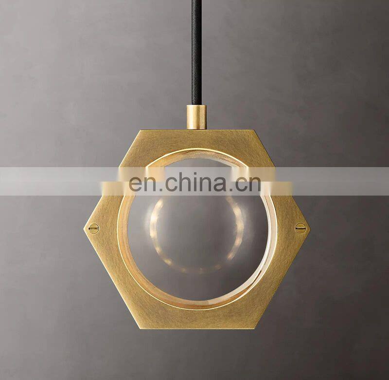 Modern Industrial Brass Metal Glass Transparent Lampshade Pendant Light Living Room Hotel Ceiling Home Decoration Lighting