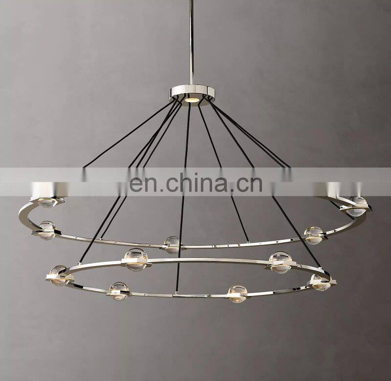 Foucault ORBl Double-layer Metal Spherical Glass Lampshade Chandelier is Suitable for Home and Hotel Ceiling Decoration Lighting