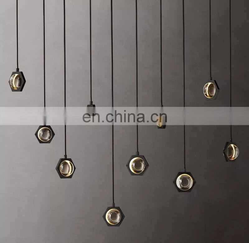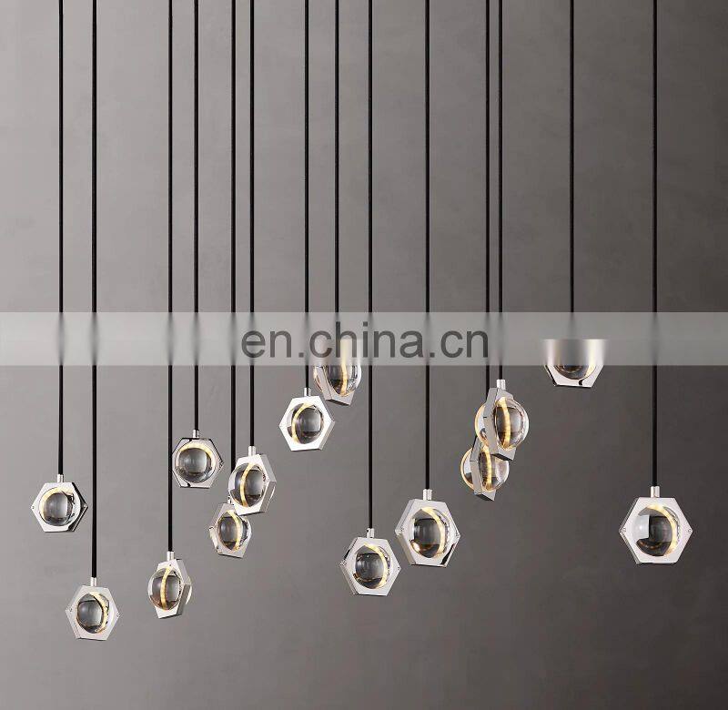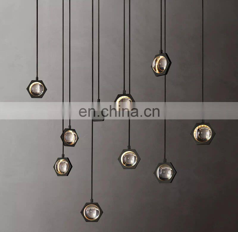 Modern Luxury Interior Decoration Round Glace Series Frosted Glass Chandelier Spiral Staircase Living Room Lighting