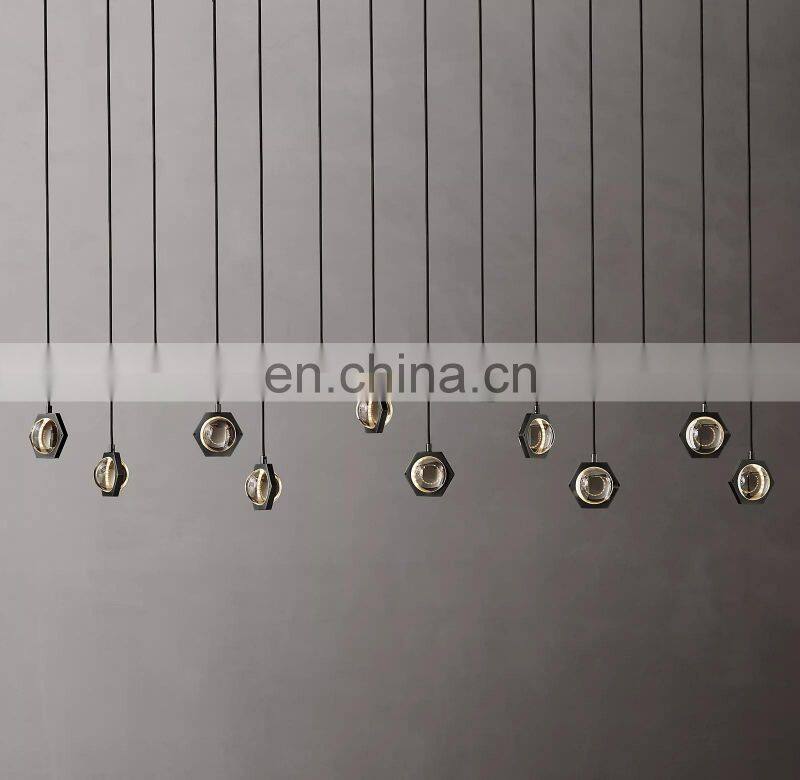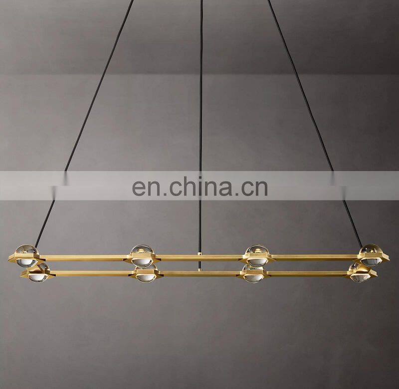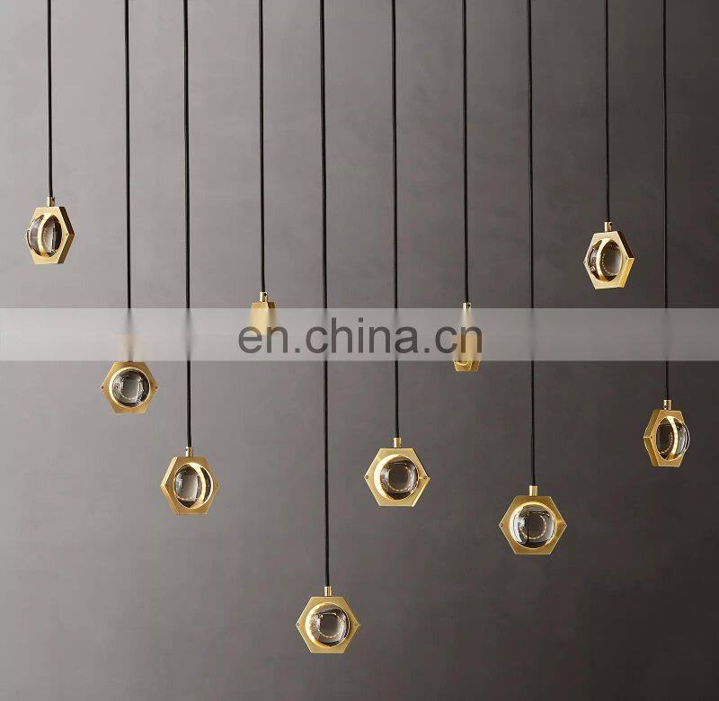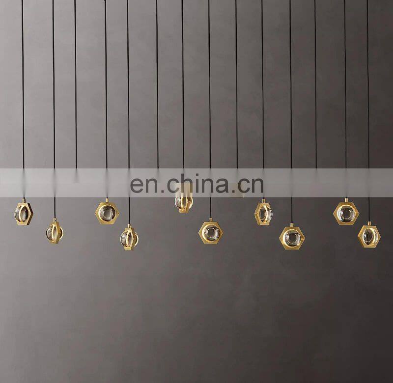 Luxury American Style Brass Crystal Lamp Modern Design LED Light Linear Pendant Glass Chandelier for Home Office or Restaurant