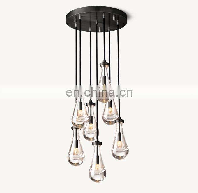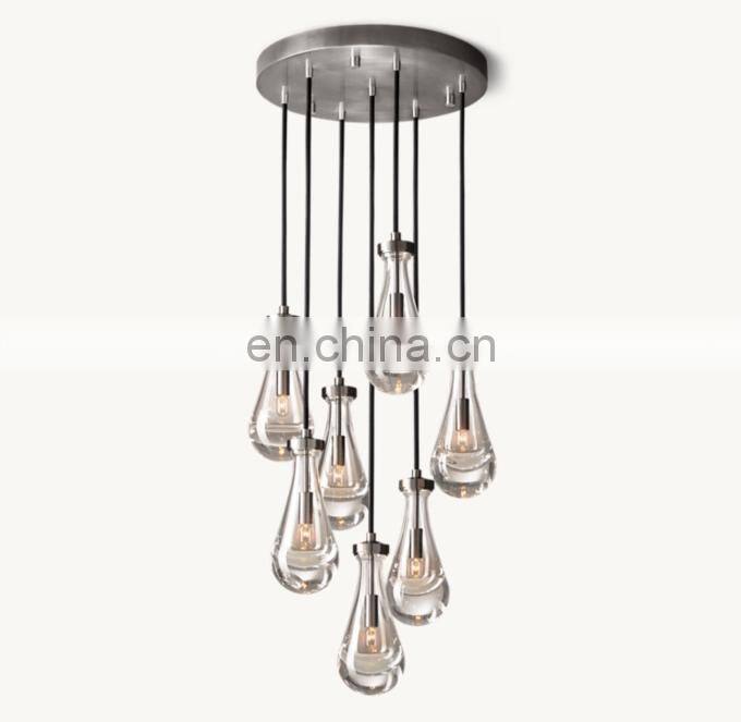 Classic Retro Brass Transparent Glass Pendant Light Home Hotel Exhibition Hall Decoration Lighting Chandeliers