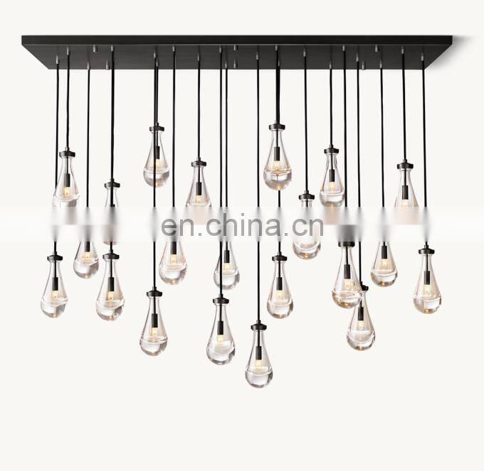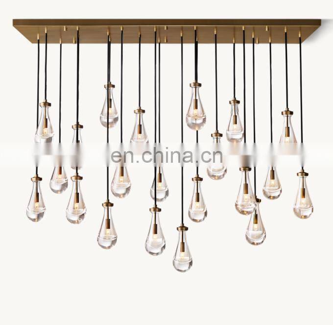 Luxury American Style Brass Crystal Lamp Modern Design LED Light Linear Pendant Glass Chandelier for Home Office or Restaurant
