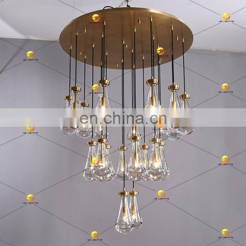 Postmodern Design Industrial Metal Chandelier Hotel Ceiling Home Lighting Brass Glass Transparent Lampshade Chandelier