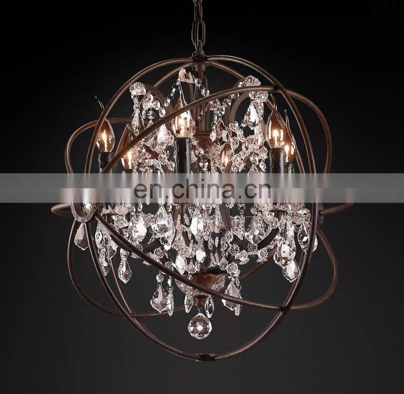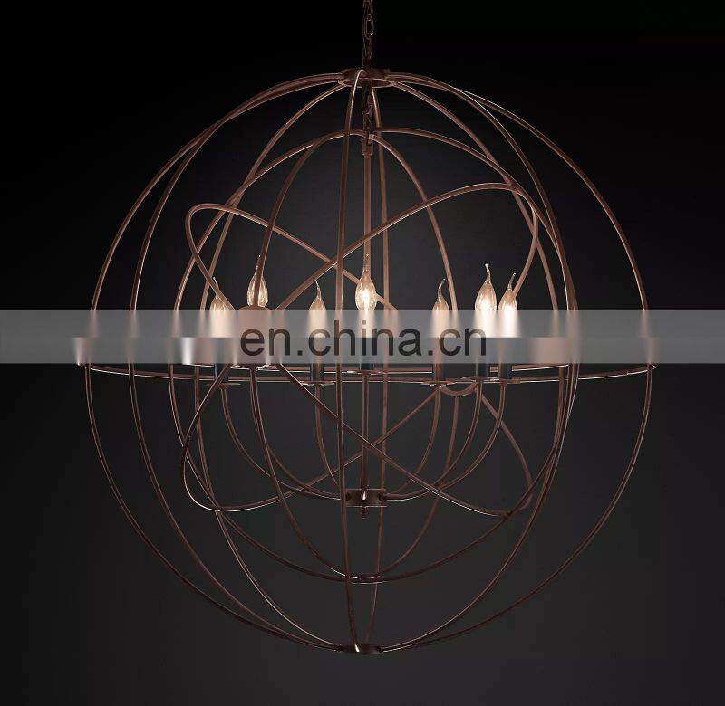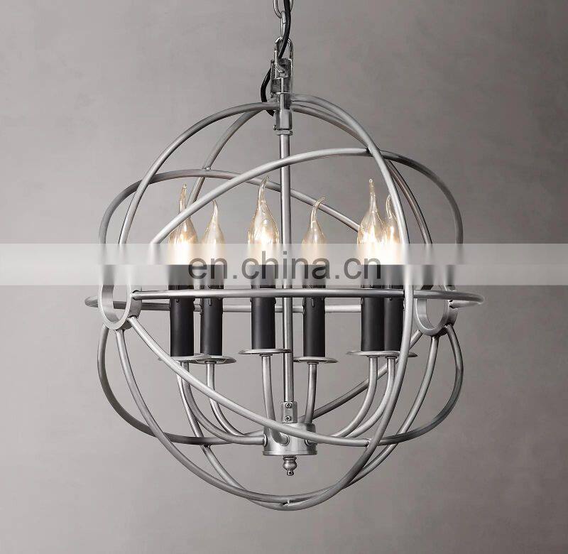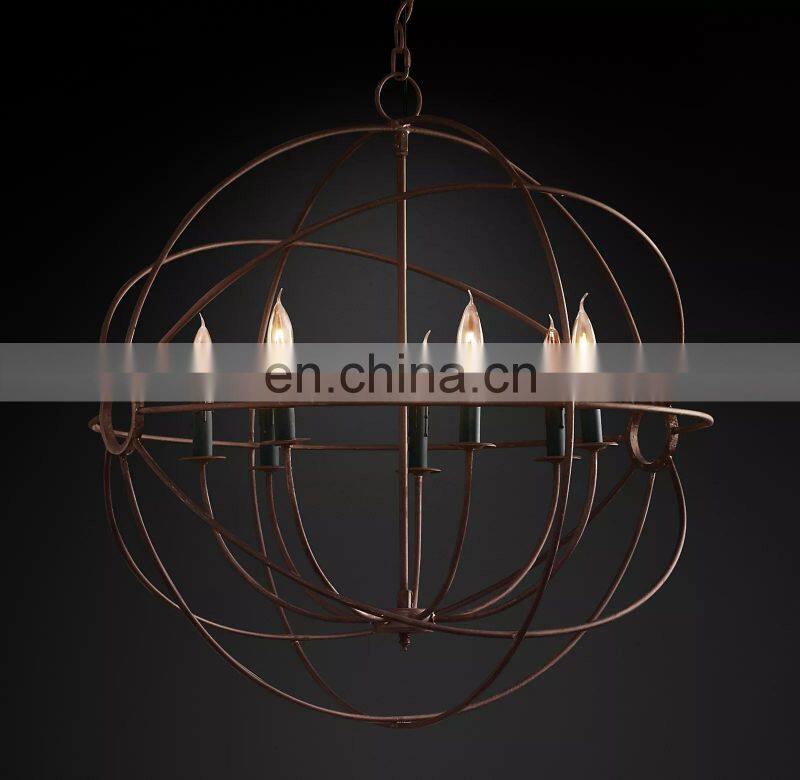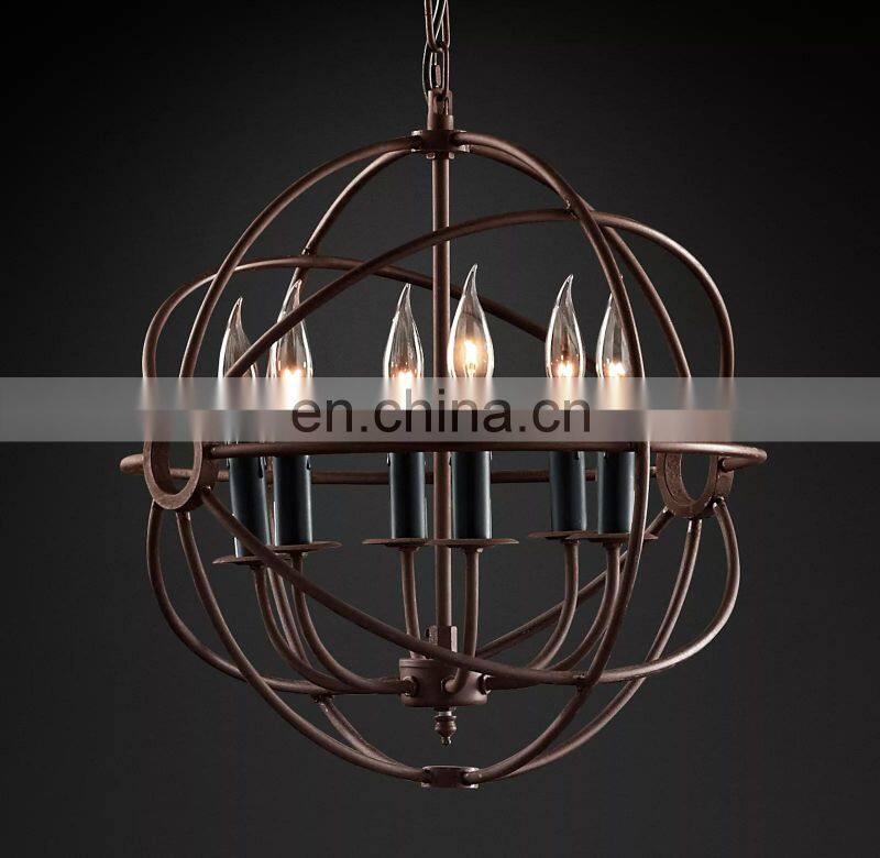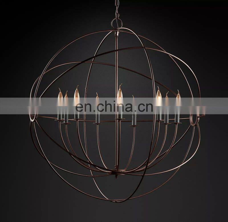 Home > Products > American Chandelier > Classic Retro Metal Industrial Glass Lampshade Spherical Chandelier for Living Room Bedroom Ceiling Home Decoration Lighting