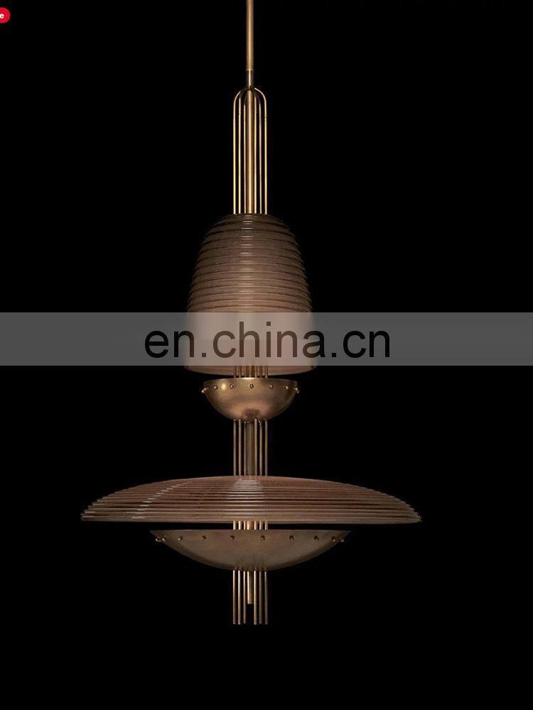 Postmodern Design Industrial Metal Chandelier Hotel Ceiling Home Lighting Brass Glass Transparent Lampshade ChandelierNegotiableMOQ: 1