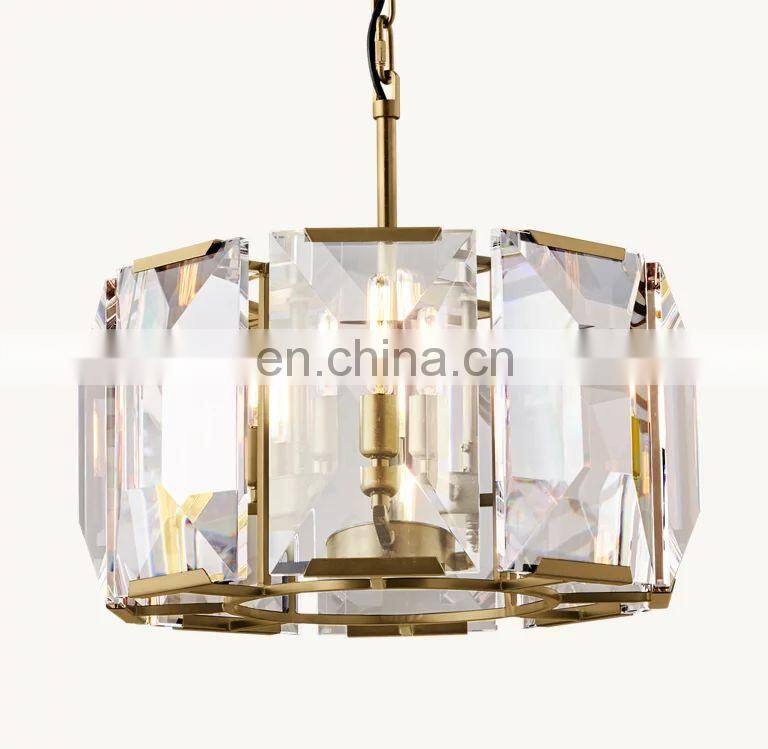 1920s Odeon Square Tier Brass LED Crystal Chandelier Modern Design for Dining Living or Bedroom for Villa Ceiling Decor