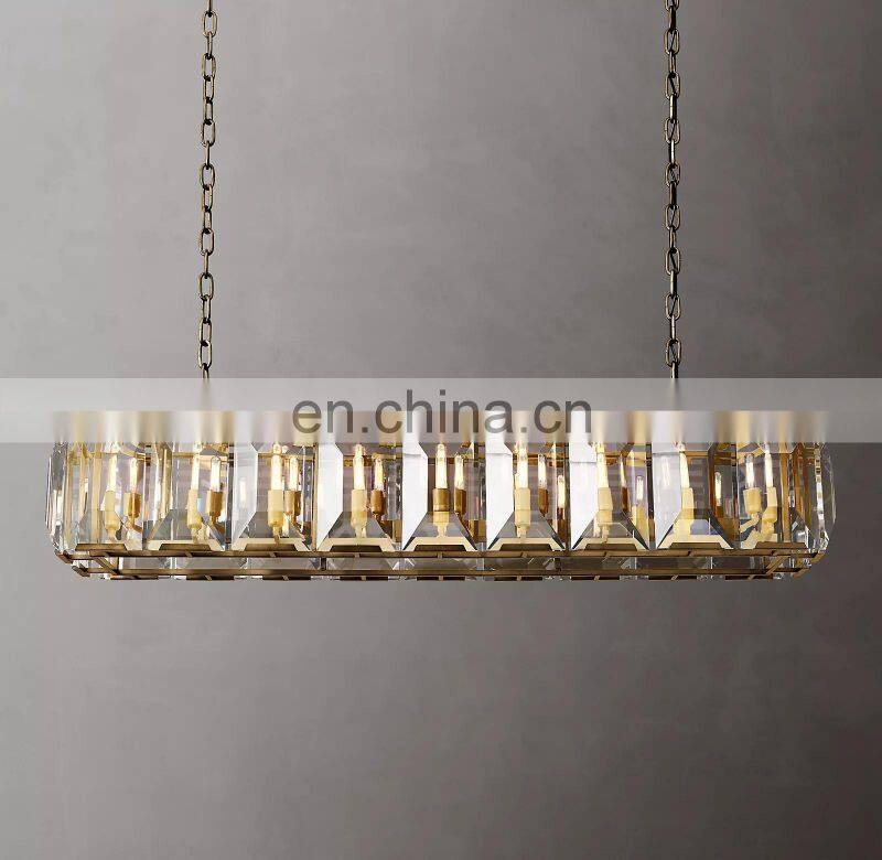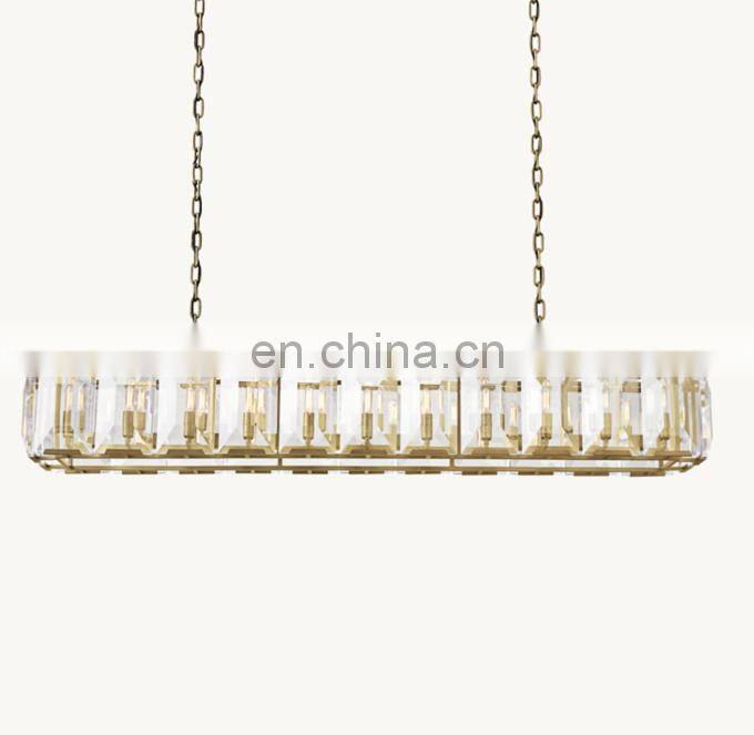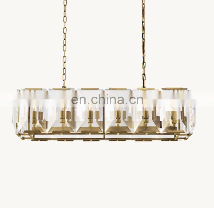 19TH C. ENGLISH OPENWORK RECTANGULAR Brass Glass Modern LED Ceiling Chandelier, Simple Home Decor for Living Room and Restaurant