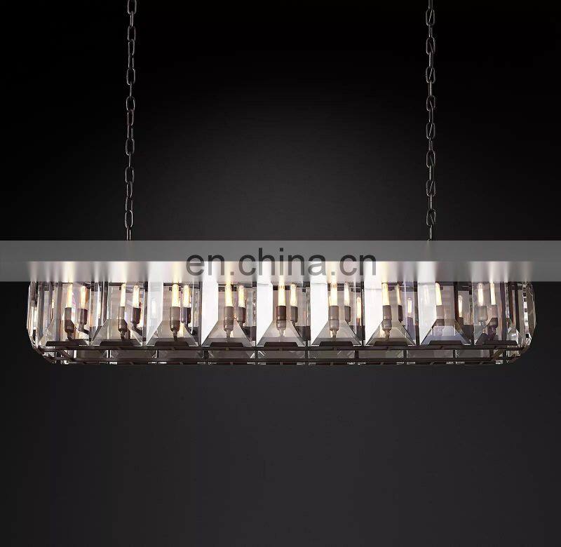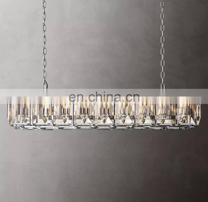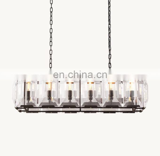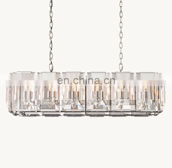 19TH C ROCOCO Iron & Crystal Rectangular Luxury Home Decor Crysta Glass Candle Chandelier Hanging for Living Room Restaurant