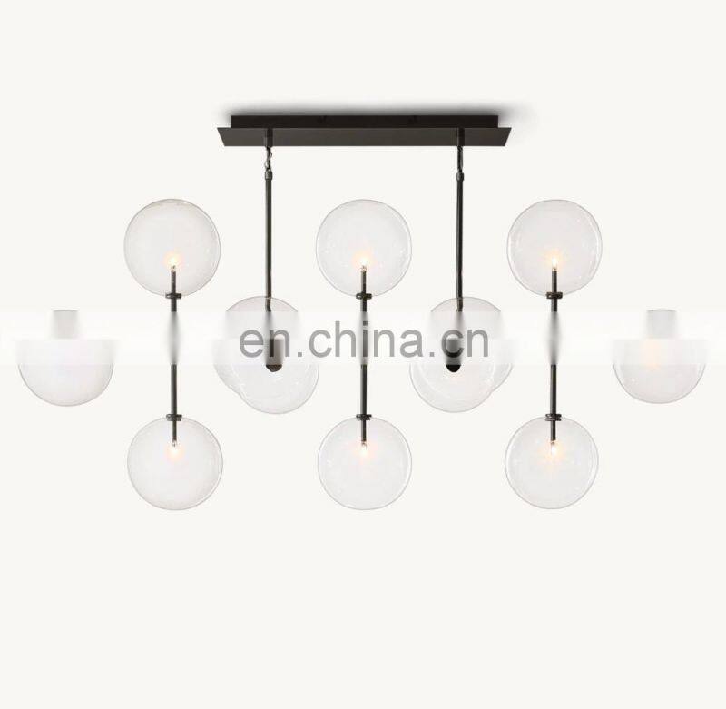 Dining Room Light Sphere Brass Chandelier GLASS GLOBE MOBILE THREE-ARM CHANDELIER 46" for Indoor Living Room