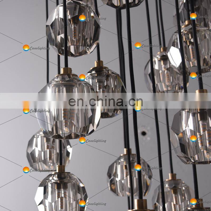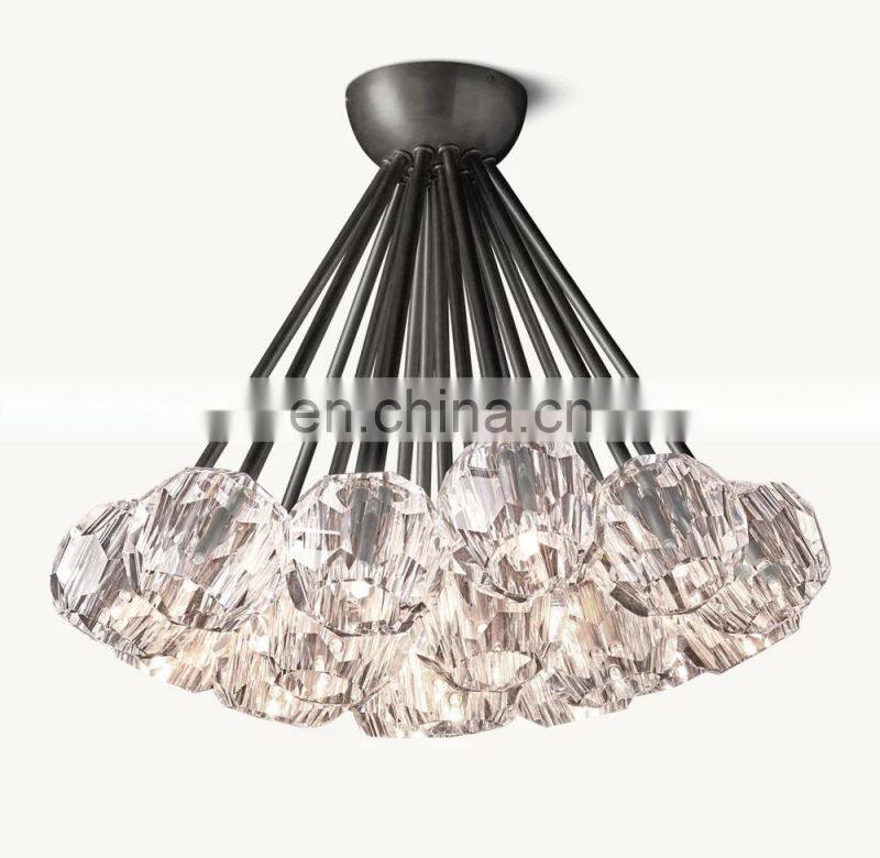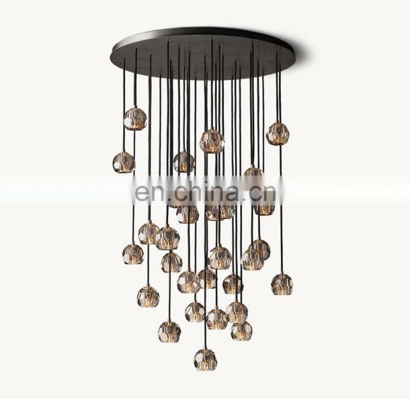 Custom Restaurant Decorative Crystal K9 Glass BOULE DE CRISTAL SMOKE GLASS ROUND CLUSTER CHANDELIER 40" for Villa