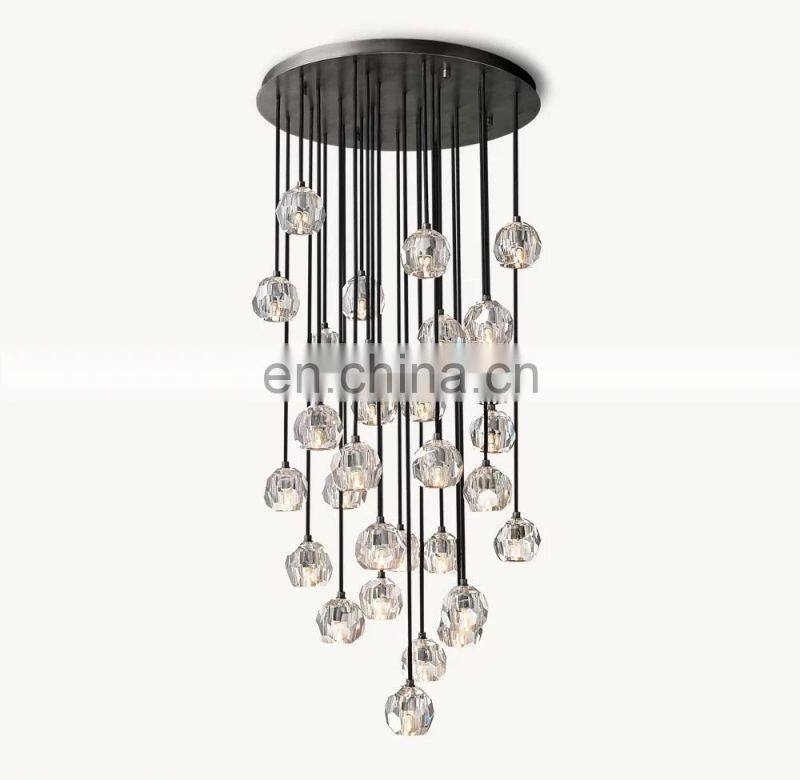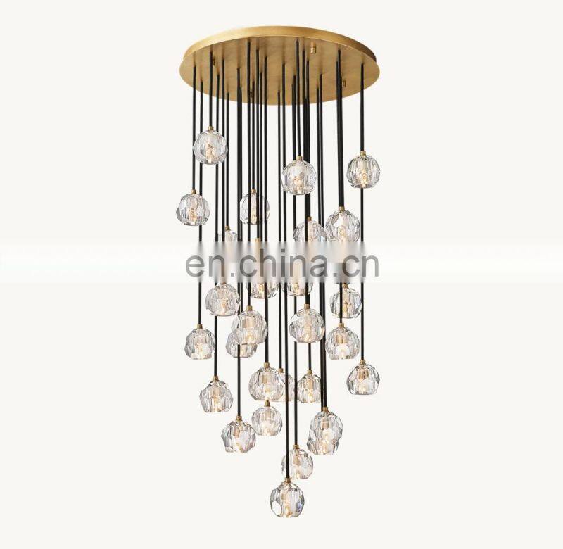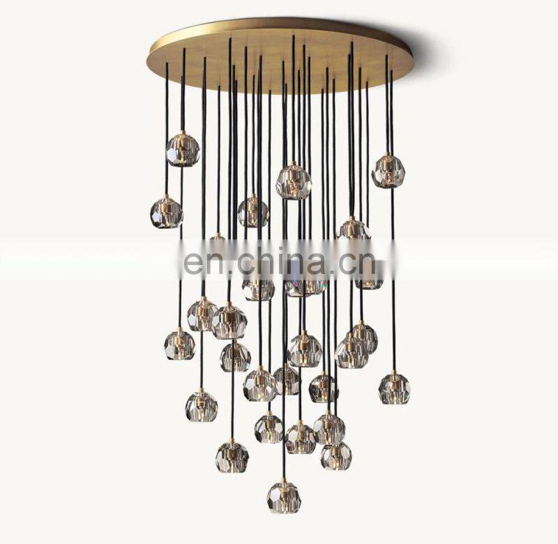 Factory Price Adjustable Light Brass Pendant BOULE DE CRISTAL CLEAR GLASS ROUND CHANDELIER 36\" for Villa Living RoomNegotiableMOQ: 1