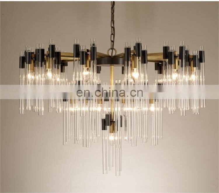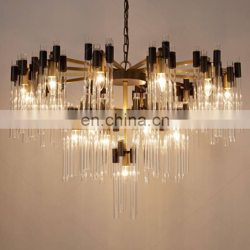 Home > Products > Project Chandeliers > High Quality Brass Chandelier Modern Black and Gold Pendant Light With Glass Tube Warm White E14 E12 Base Type for Living Room