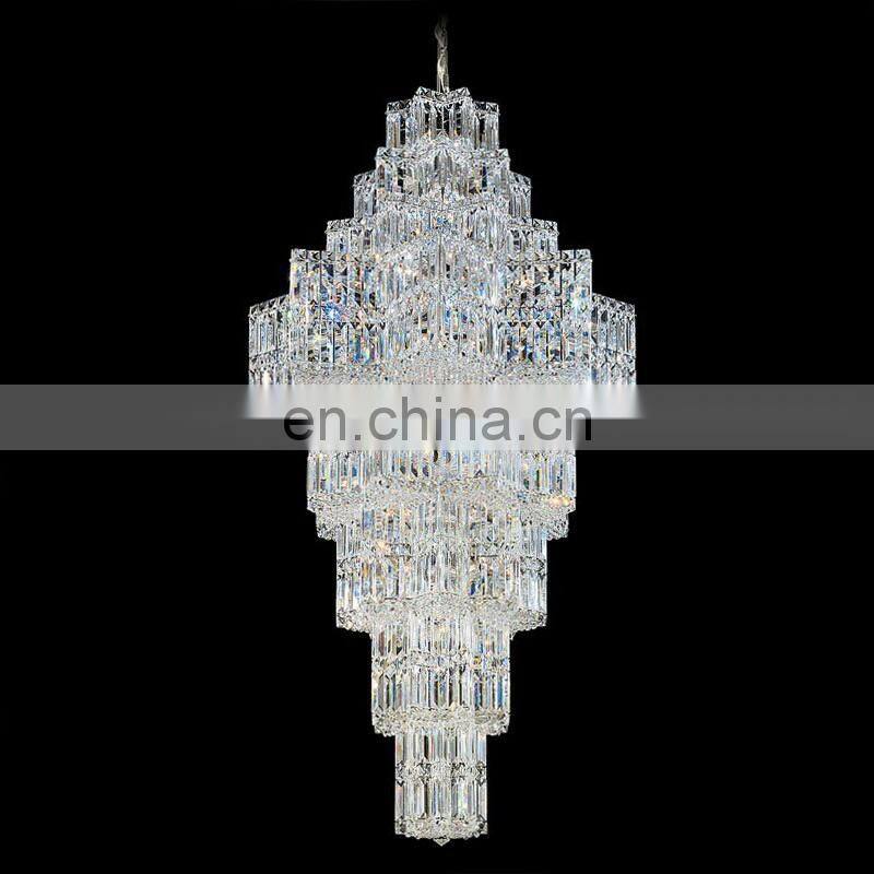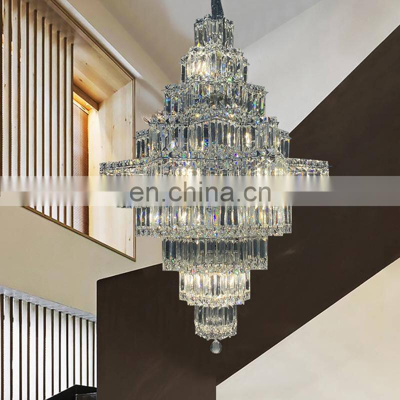 Big Square Crystal Chandeliers & Pendant Lights Long Staircase Foyer Luxury Lighting Fixtures
