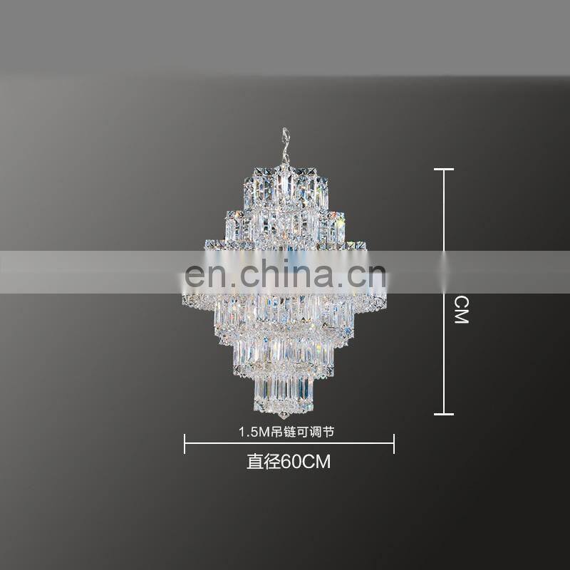 European Style K9 Crystal Large Chandelier Villa Staircase Crystal Chandelier LED Lamp