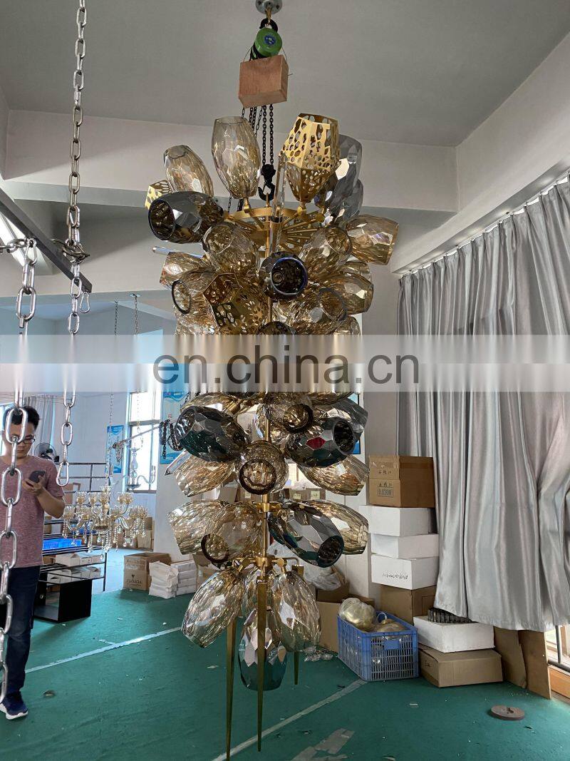 Modern Custom Designed Hotel Lobby Crystal Chandeliers Luxury Villa Staircase Chandeliers