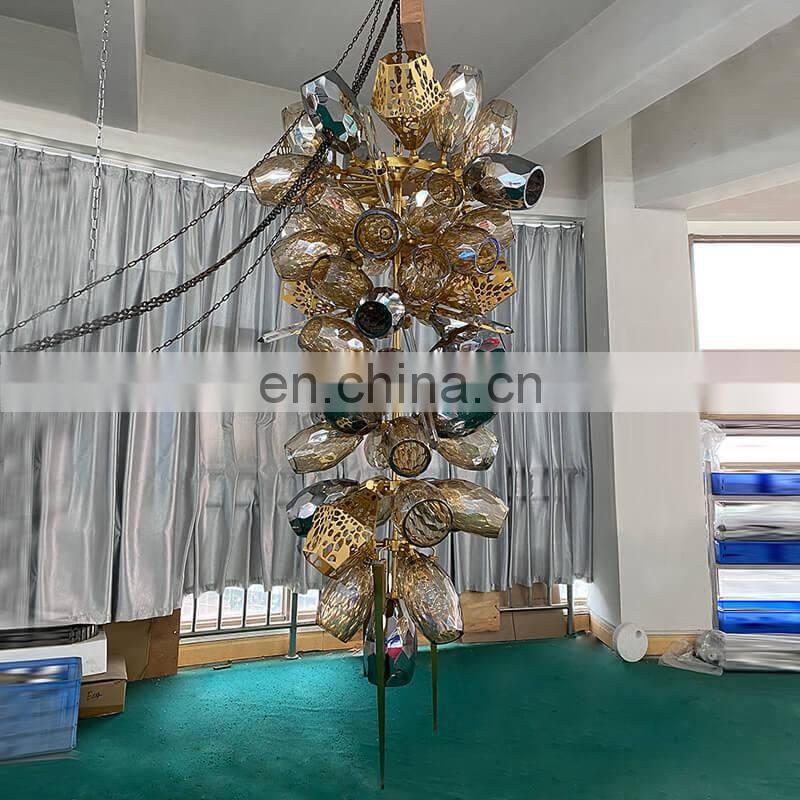 Modern Luxury Hotel Lobby Stairwell High Ceiling Crystal Pendant Lighting Chandelier
