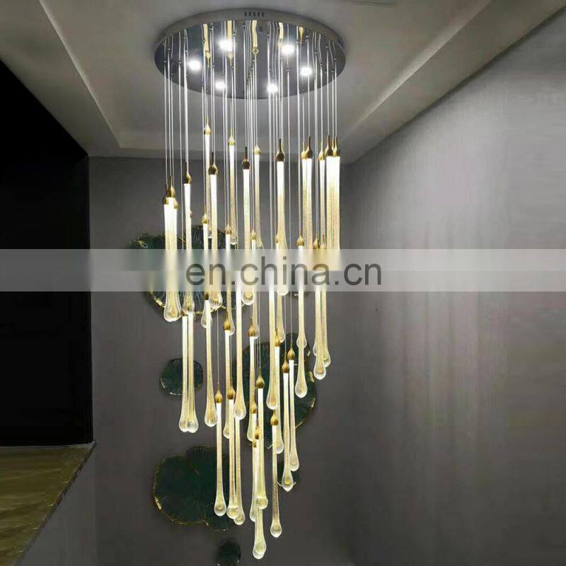 High Quality Art Stairway Villa Hotel Custom Project Modern Luxury Glass Long Led Chandelier Light
