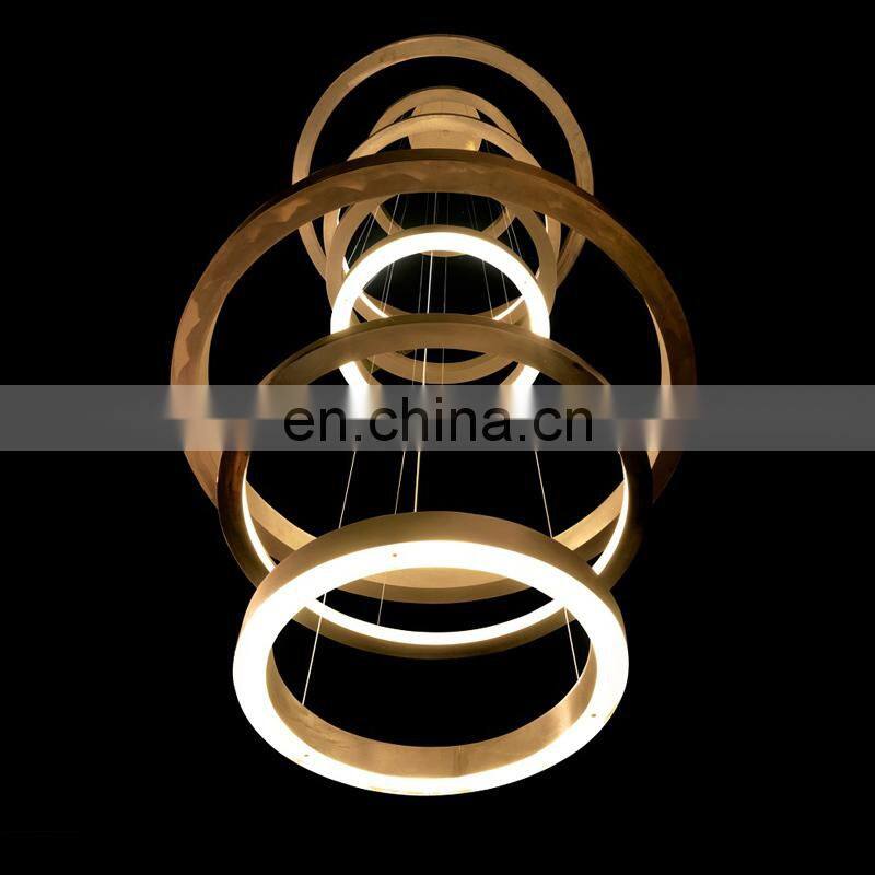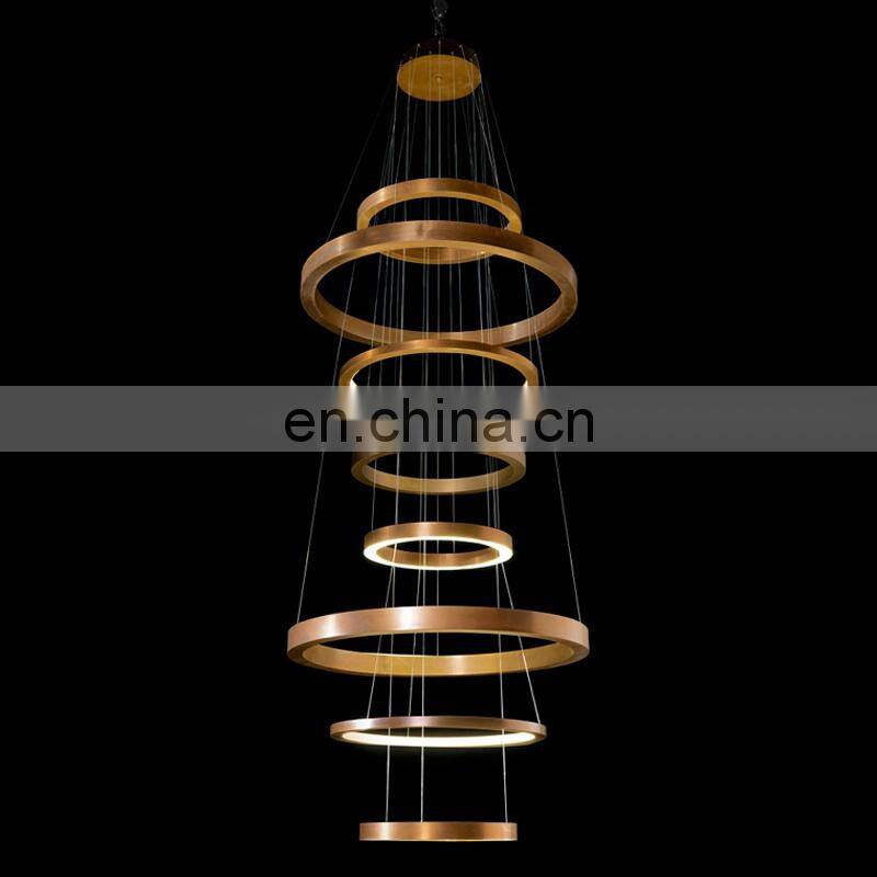 Custom Luxury Hotel Lobby Stairwell High Ceiling Multiple Ring Pendant Lighting Chandelier
