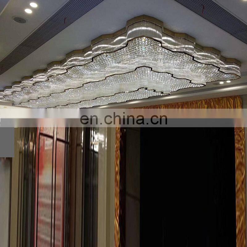 Modern Luxury Banquet Hall Hotel Hall Ceiling Large Rectangular Crystal Chandelier