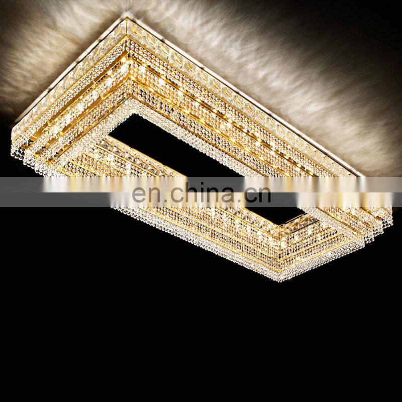 Extra Large Ceiling Crystal Chandelier Luxury Gold K9 Crystal Lighting Flush Mounted Hotel Chandelier
