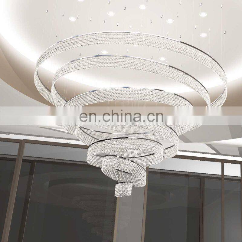 Modern Large Lobby k9 Crystal Chandelier Stairs Lights Ring Circle Led Chandelier