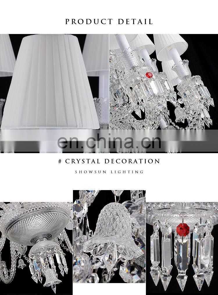Zhongshan Factory 18 Lights Glass Arms Candle Style Banquet Hall Crystal Chandelier Light French Style Wedding Chandelier