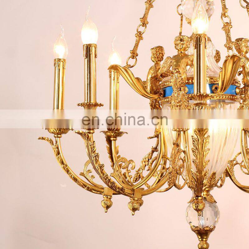 French Golden Copper Chandelier European Villa Luxury Crystal Pendant Lamps For HotelNegotiableMOQ: 1