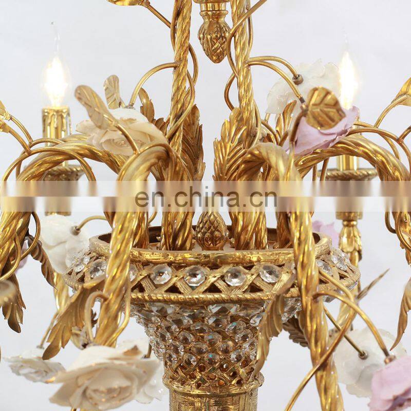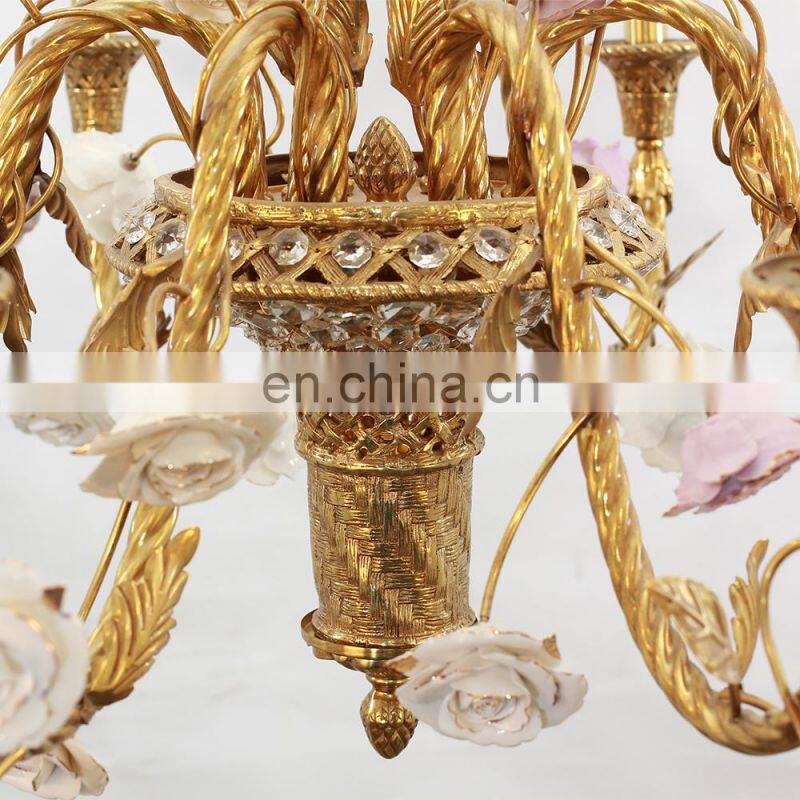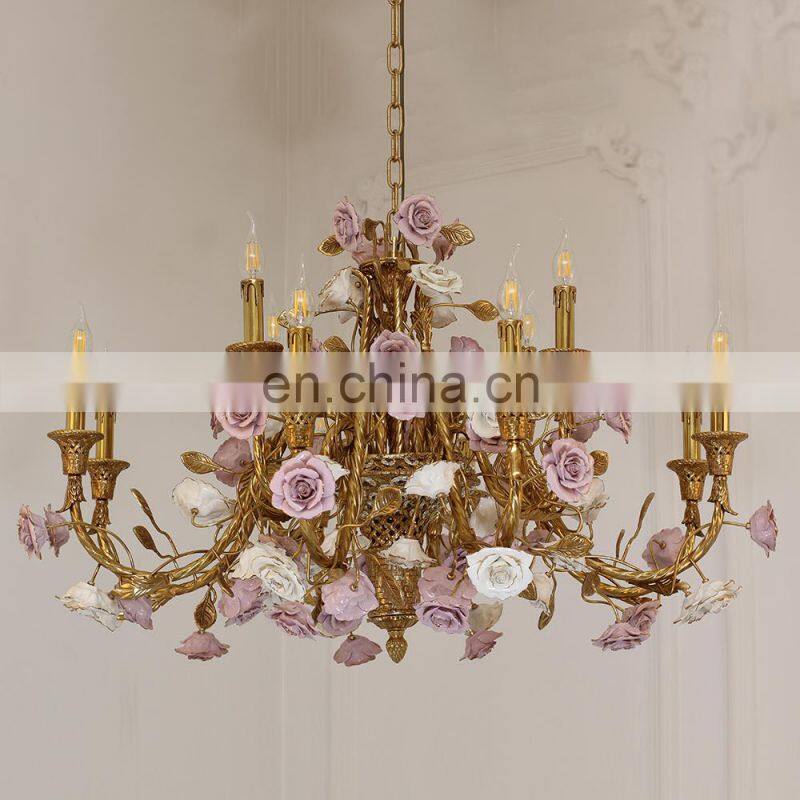 French Luxury Living Room Dining Room Villa Brass Ceramic Flower Romantic Copper Chandelier