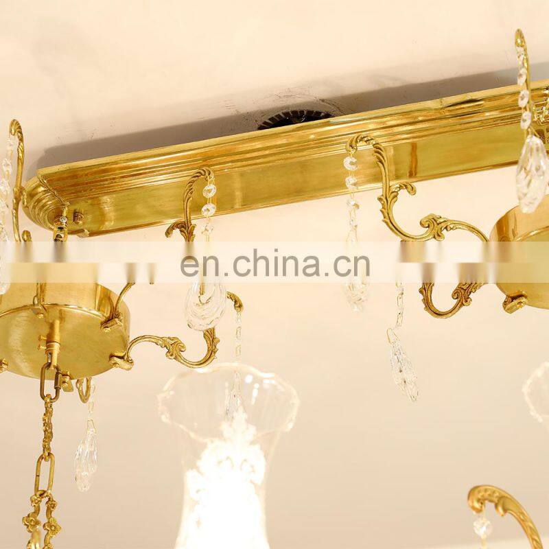 French Luxury Style Dining Room Home Decor Antique Gold Brass Led Crystal Chandelier Pendant