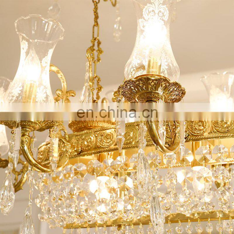 European Elegant Style Full Copper Pendant Lamp Living Room Antique Brass Crystal Chandelier