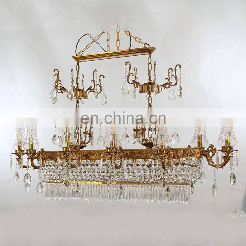 Home > Products > Classical Chandelier > Antique Brass Crystal Lighting Hallway Pendant Lamp Rectangular Dining Room Chandelier for Restaurants
