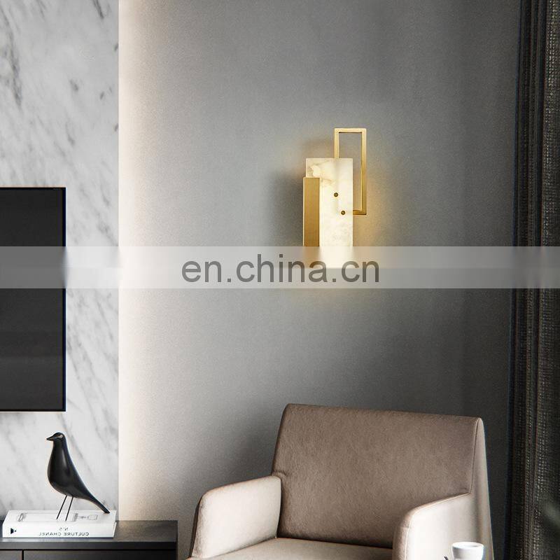 Creative Indoor Living Room Bedroom Brass Wall Light Modern Alabaster Led Wall Lamp