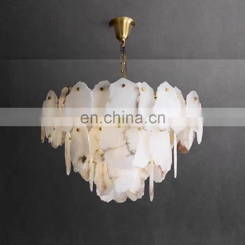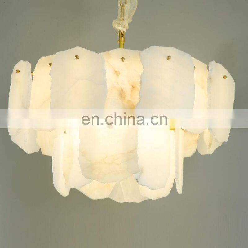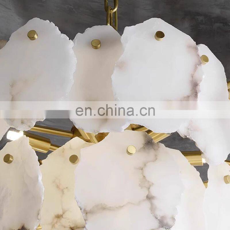 2024 New Design Natural Marble Supermarket Cafe Hotel Villa Light Luxury Led Alabaster Chandelier Pendant LightNegotiableMOQ: 1