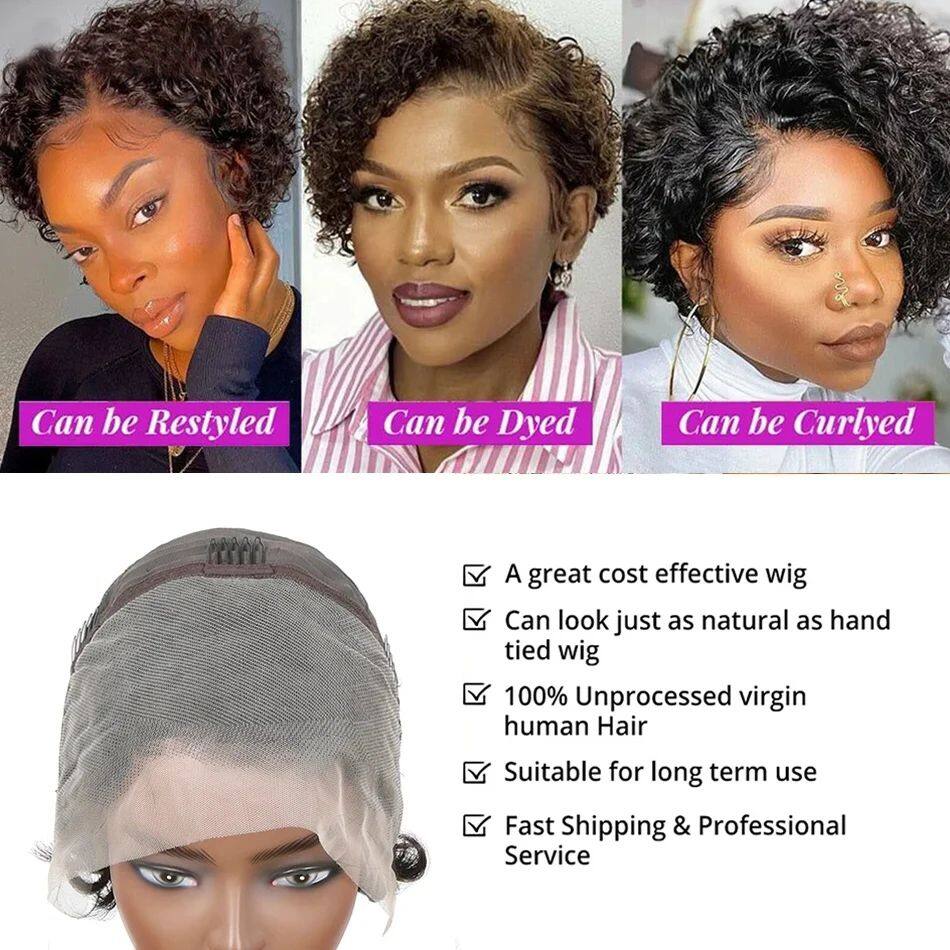 Short Kinky Curly Human Hair Lace Frontal Wig Pixie Cut Wig Human Hair 13X4 Lace Front Natural Brazilian Hair Wigs For Women