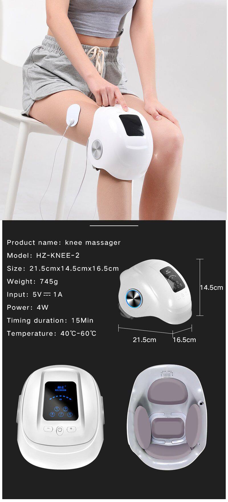 This product integrates hot compress, vibration, air pressure, pulse massage, airbag compression massage, high-frequency vibration massage, and infrared hot compress functions to promote the circulation of meridians and blood, achieving the effect of relaxing the knee joint.
