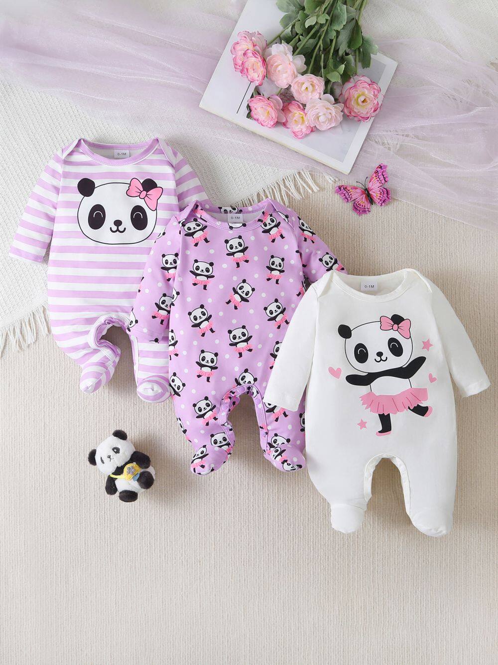 3pcs Newborn Baby's Cartoon Bear Cherry Themed Pattern Footed Onesie, Comfy Long Sleeve Romper, Toddler & Infant Girl's BodysuitUS$ 8 - 10MOQ: 80 Bags